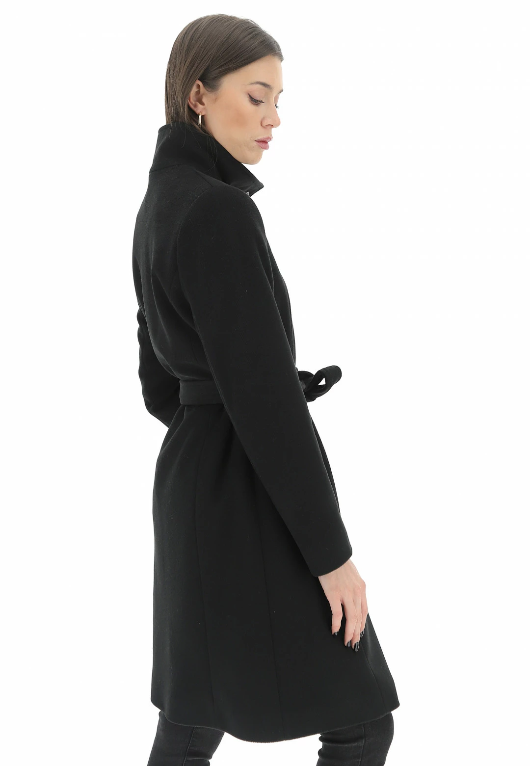 Cappotto In Tessuto Morbido Eks Made In Italy Con Bottoni E Cintura In Vita