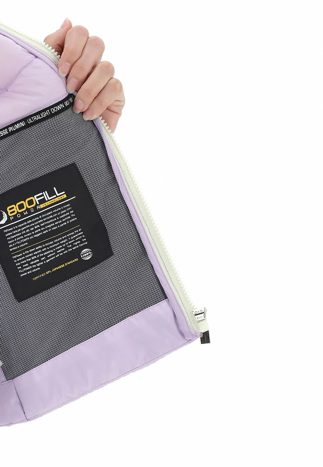 - Altre caratteristiche: sistema ultraleggero 800fill power, tasche con zip, logo tono su tono sulla manica