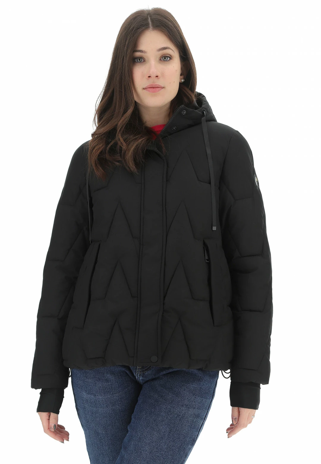 Clinchberry Giubbotto Corto Clichberry Con Cuciture Geometrica Full Zip E Cappuccio