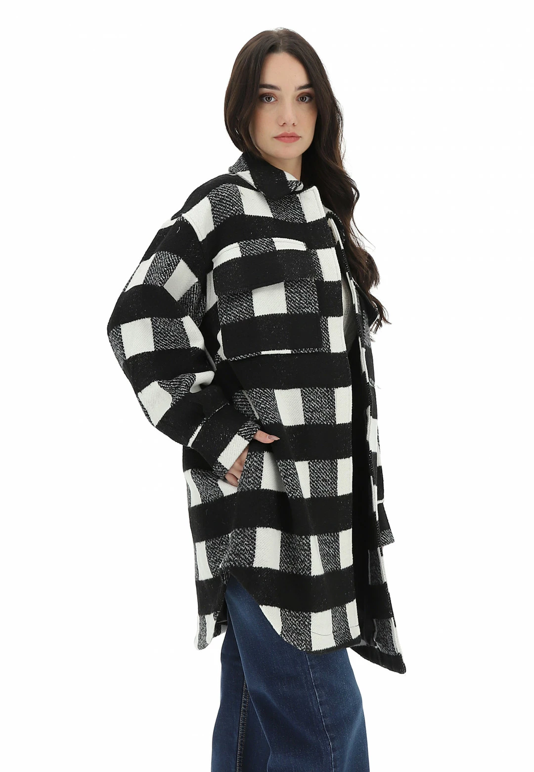 EKS Cappottino A Quadri Misto Lana Con Tasche Frontali èks