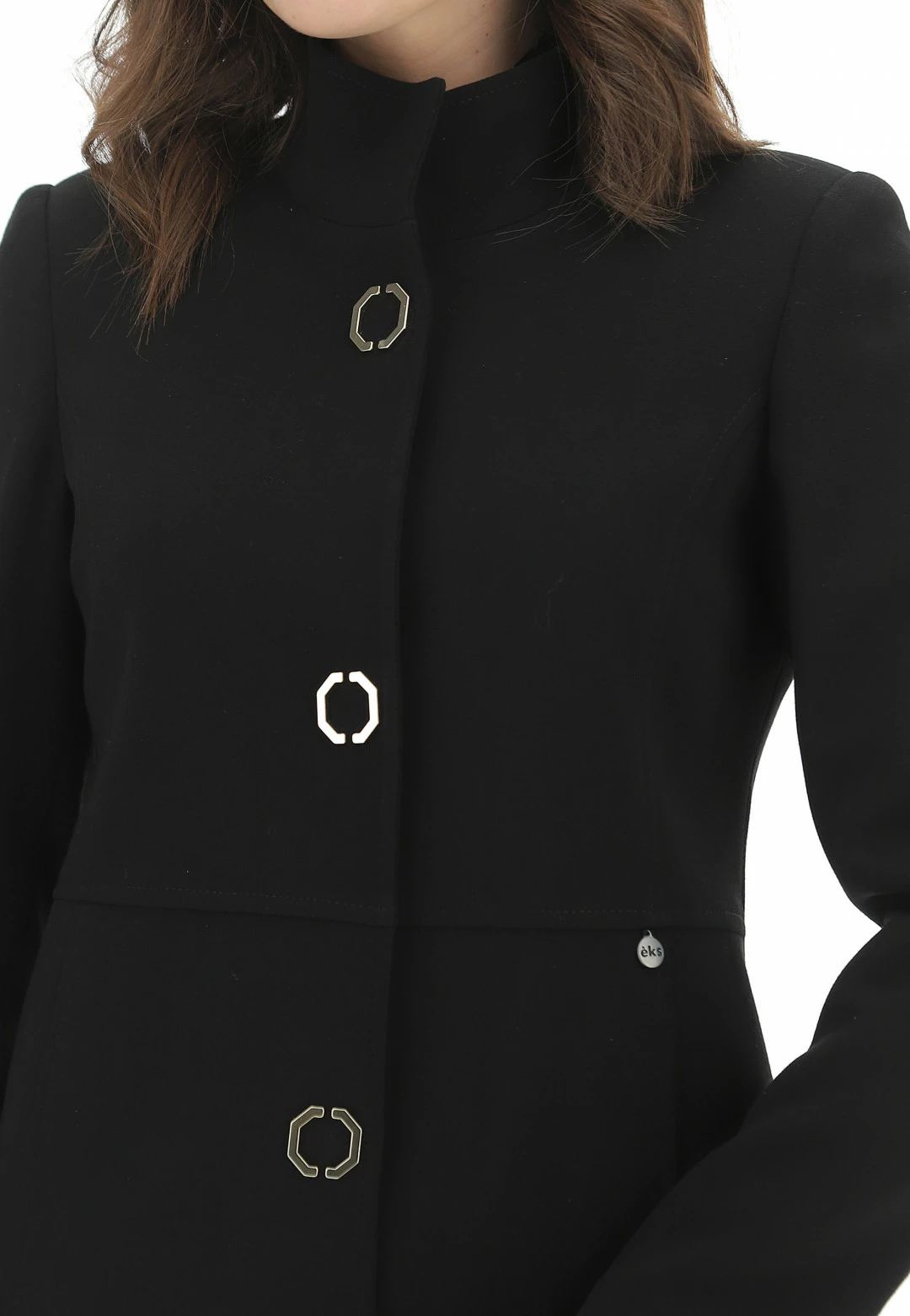 EKS Cappottino Donna èks Made In Italy In Crepe Foderato Con Bottoni A Contrasto