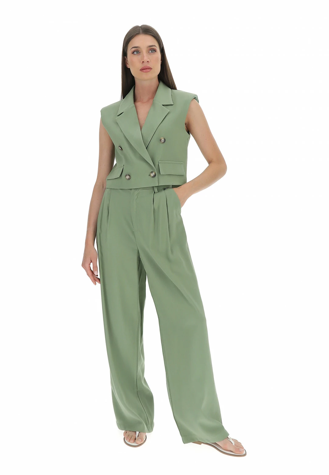 EKS Gilet Crop Doppiopetto Misto Viscosa Con Spalline èks