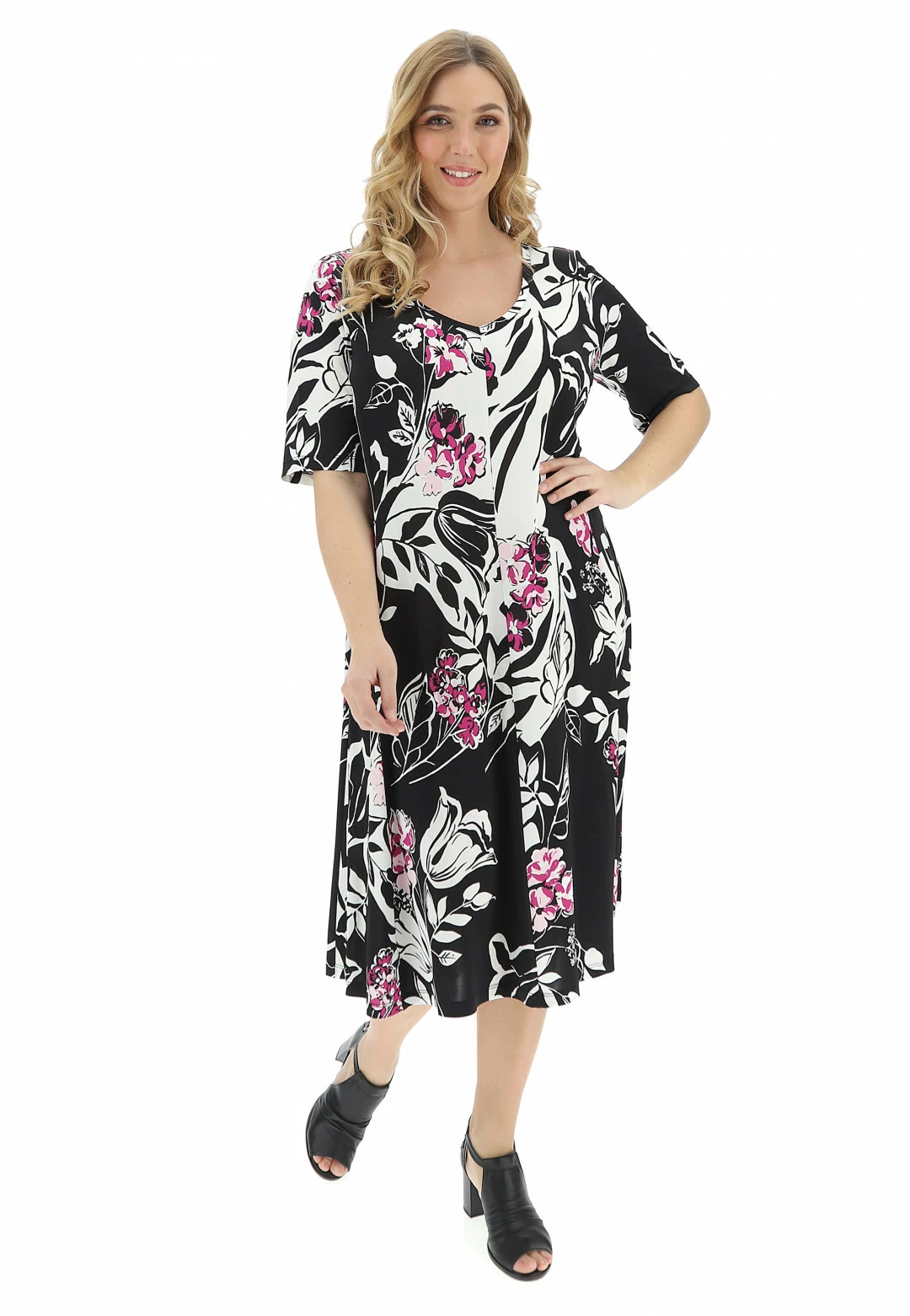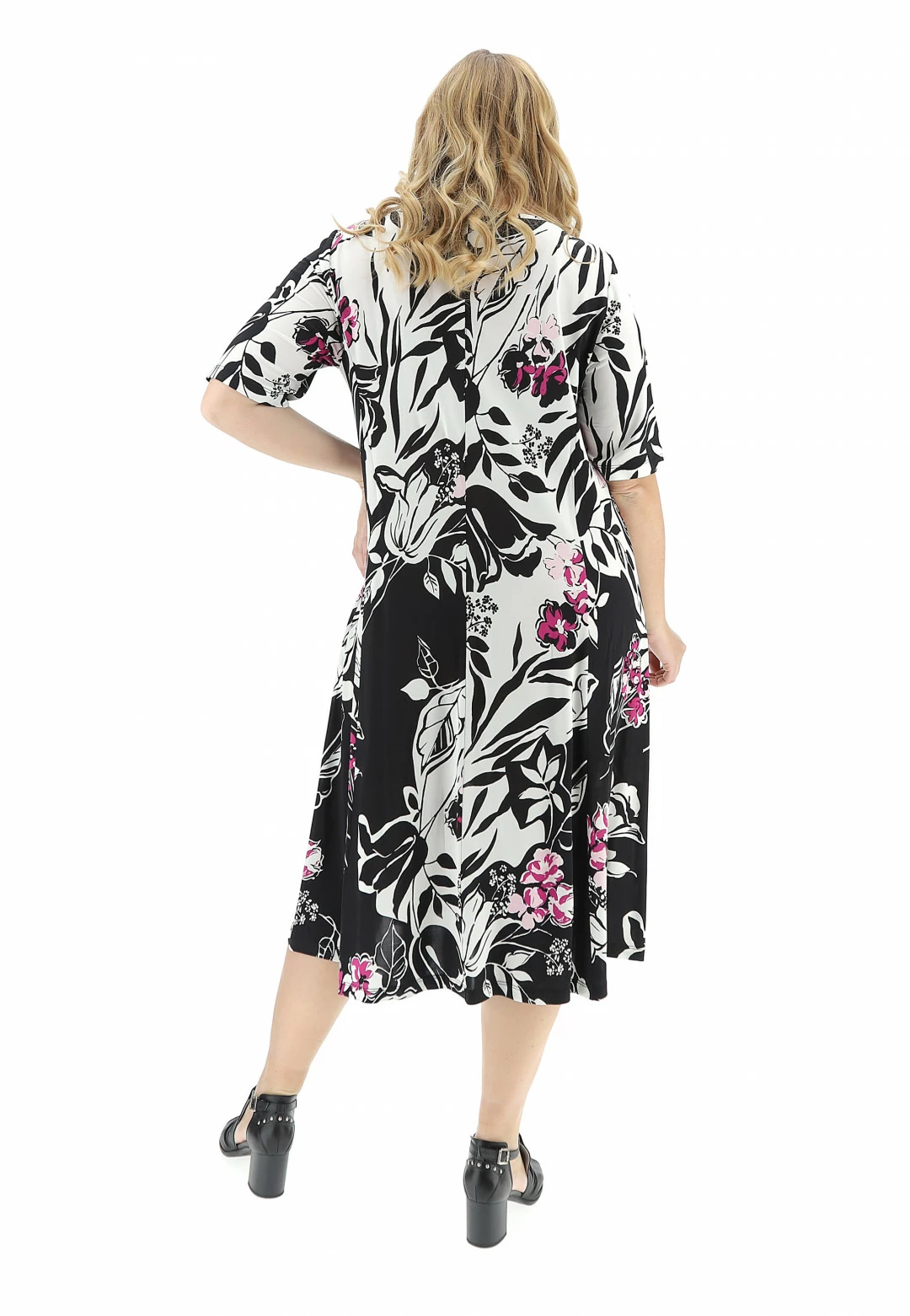 FOLLIA Abito In Maglina Fluido Svasato Con Fiori
