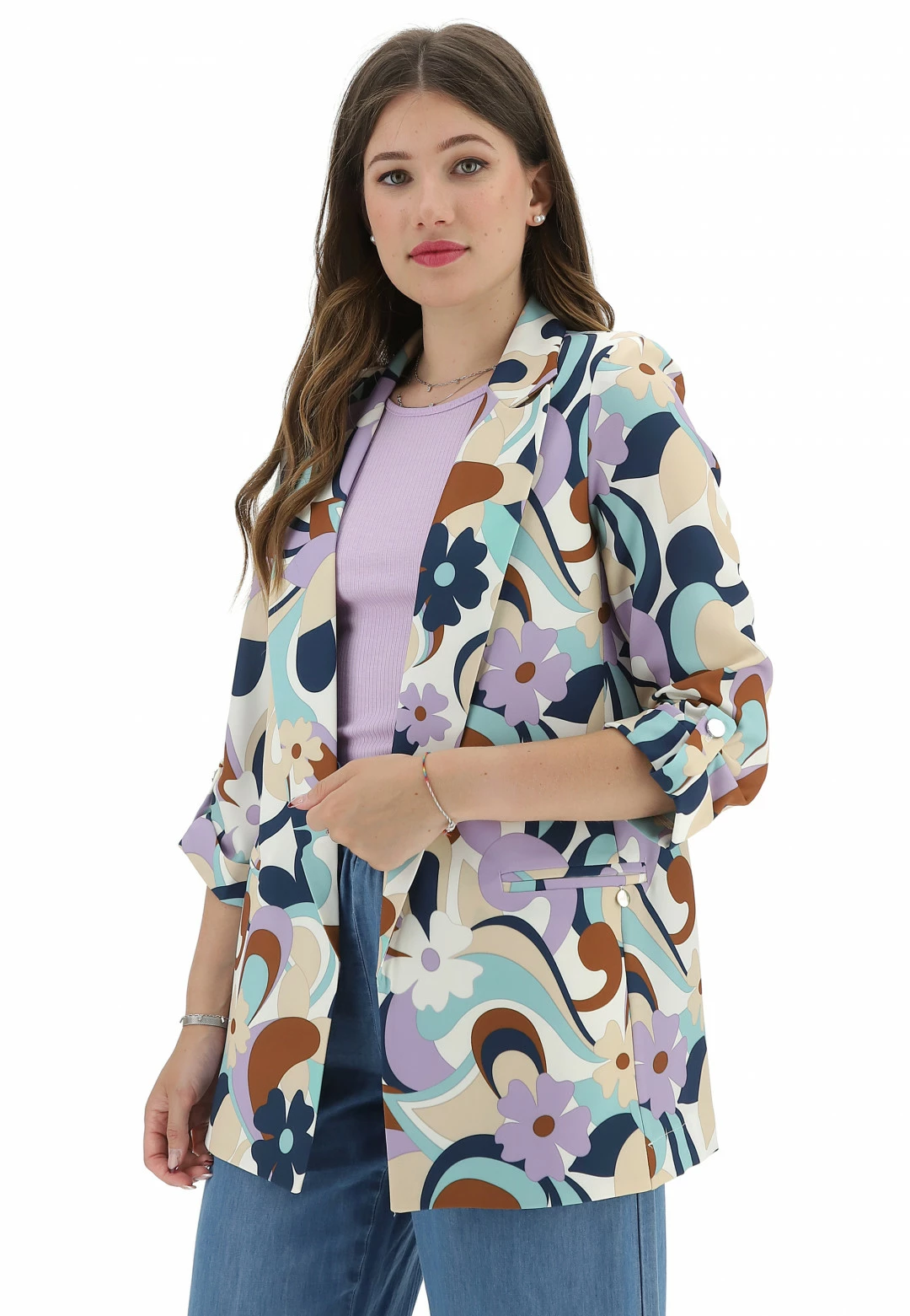Giacca Aperta Fantasia Floreale Multicolor Eks