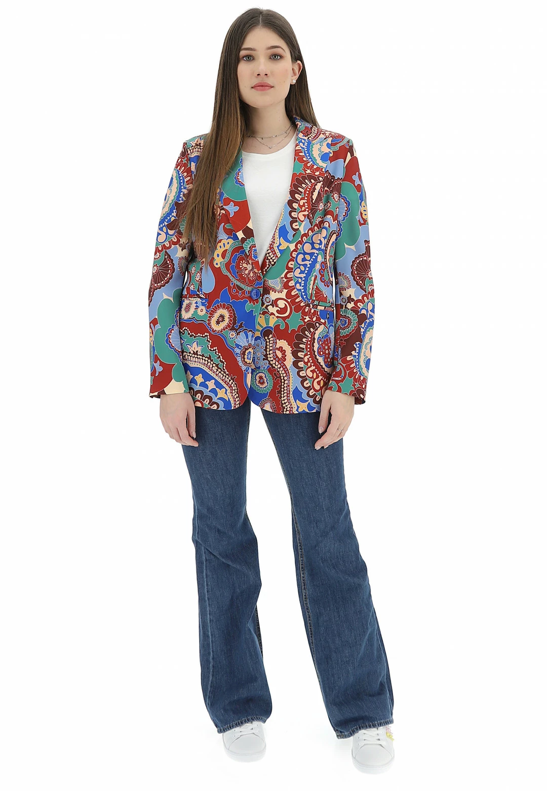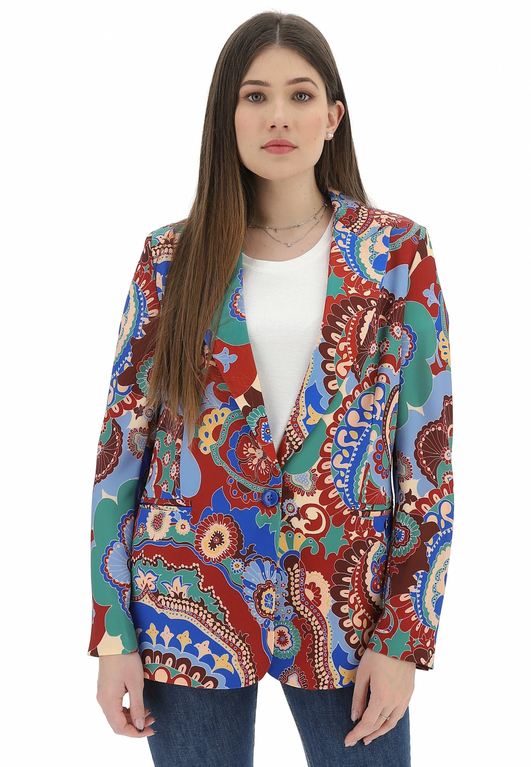 Giacca Con Bottone In Fantasia Cachemire Eks Donna
