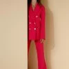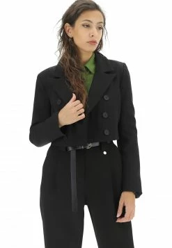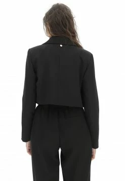 Giacca Crop Eks Doppio Petto Con Tramatura A Costine Diagonali In Tinta Unita Made In Italy