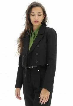 Giacca Crop Eks Doppio Petto Con Tramatura A Costine Diagonali In Tinta Unita Made In Italy
