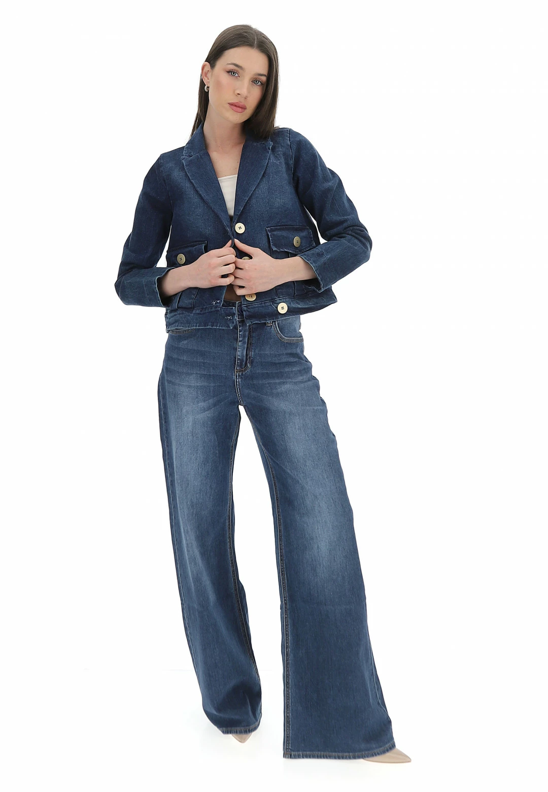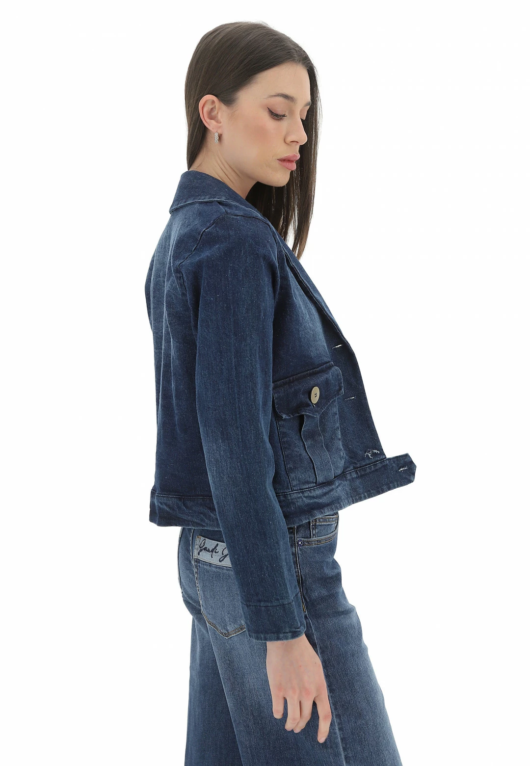 Giacca Crop Susy Mix Donna In Denim A Tre Bottoni Con Tasche Laterali