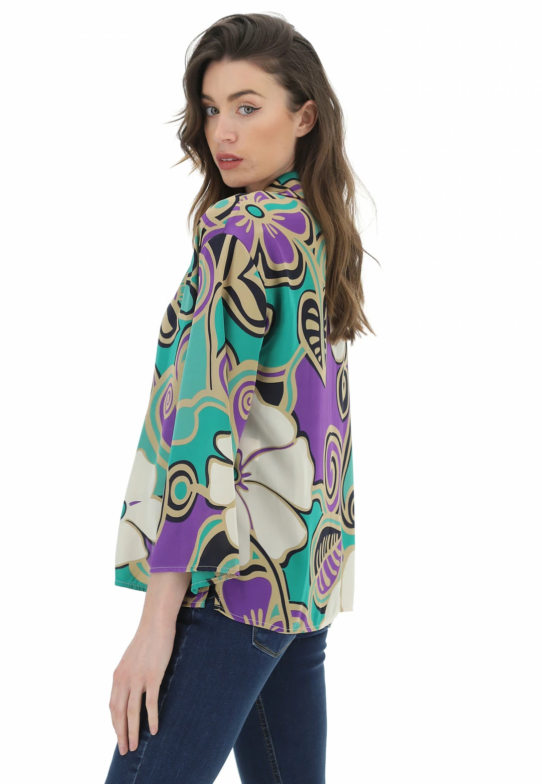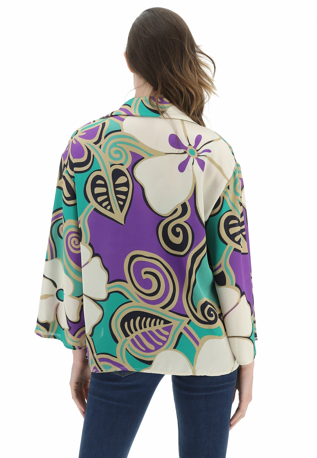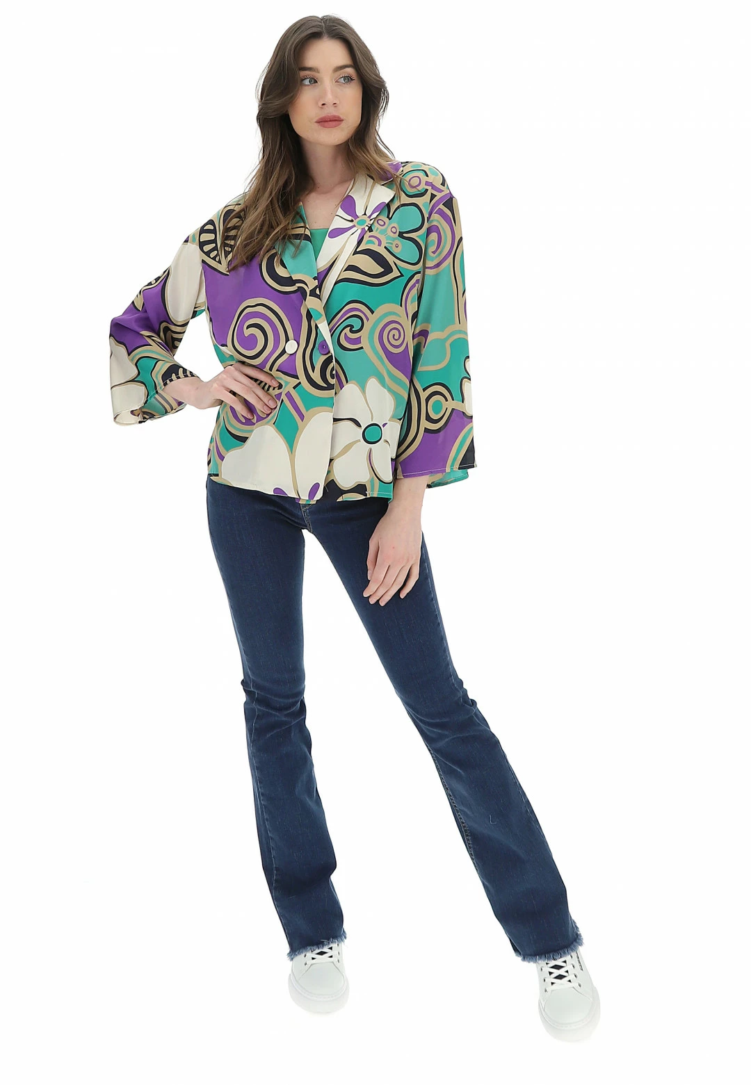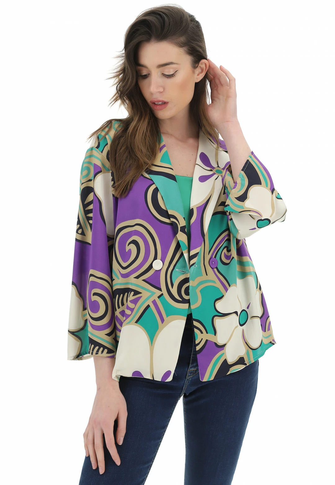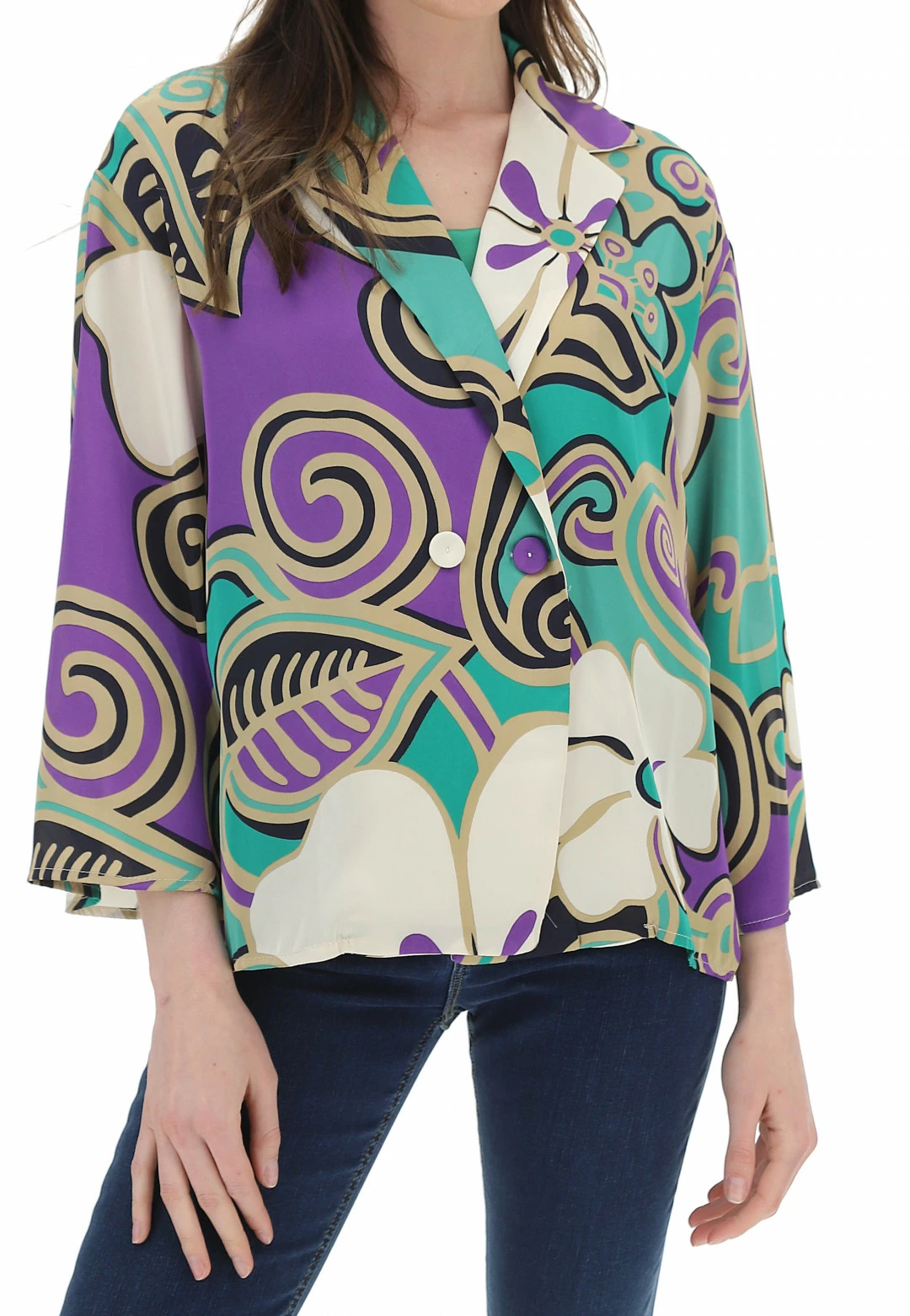 Giacca Effetto Raso Doppio Petto Susy Mix Stampa Astratta
