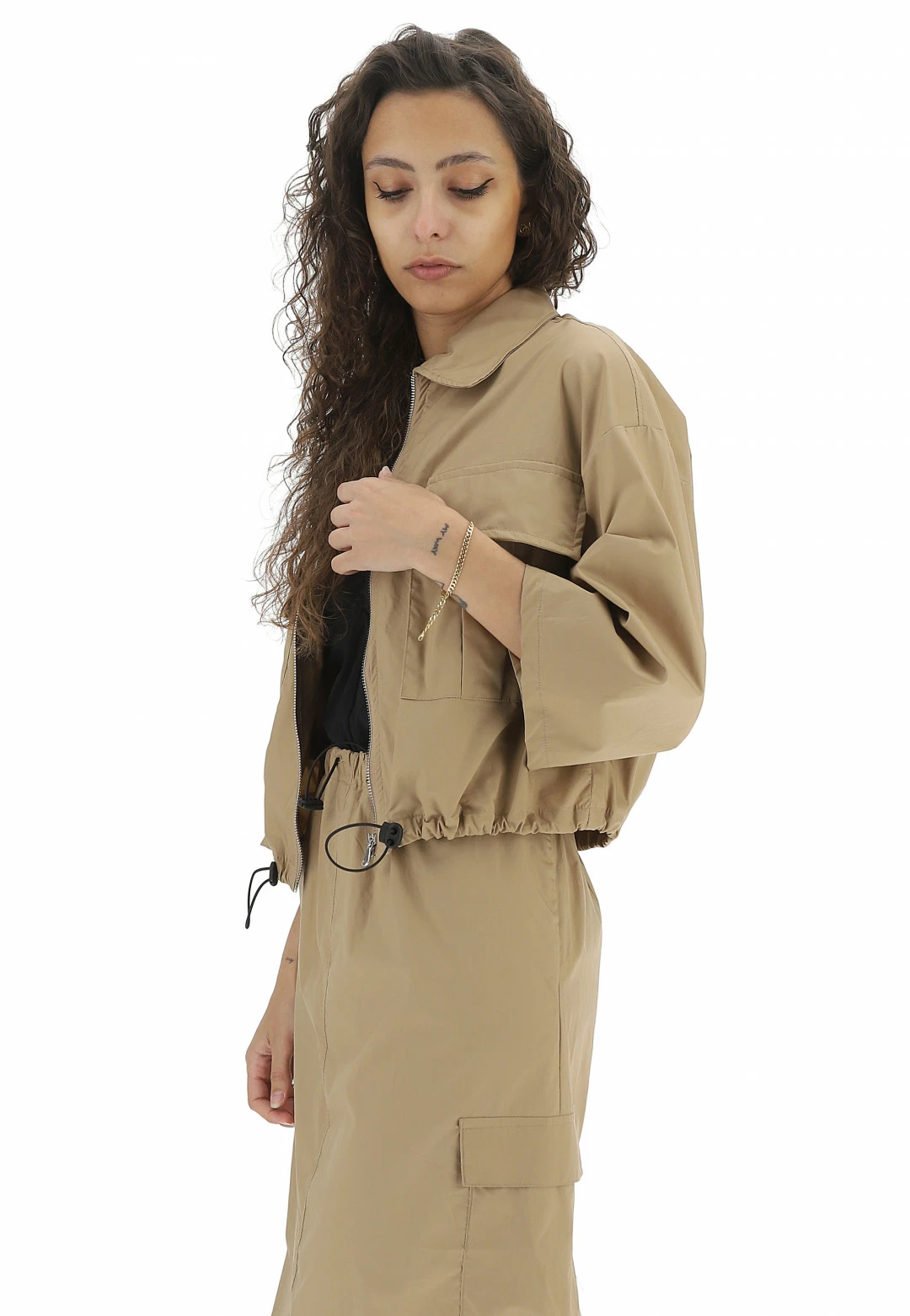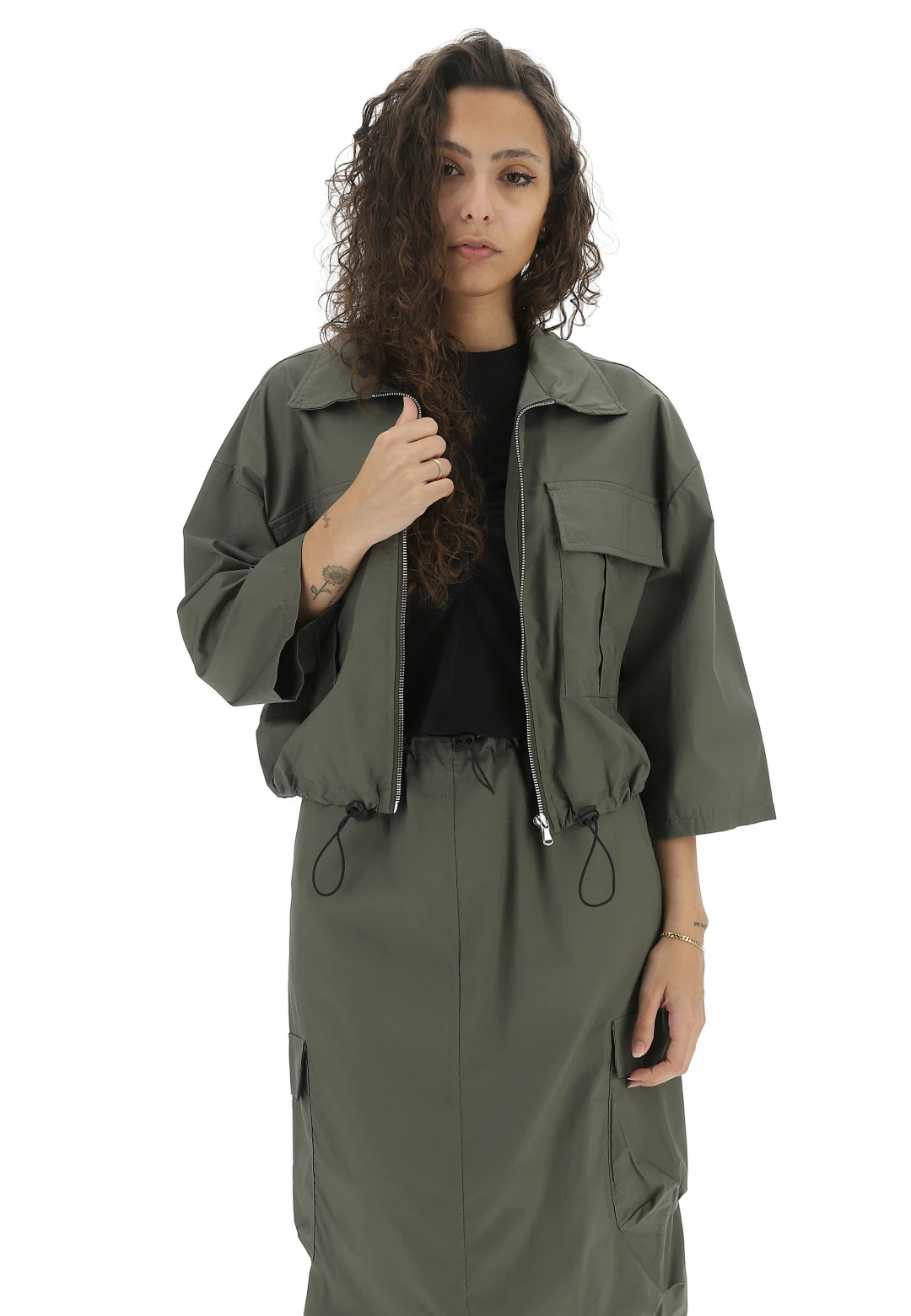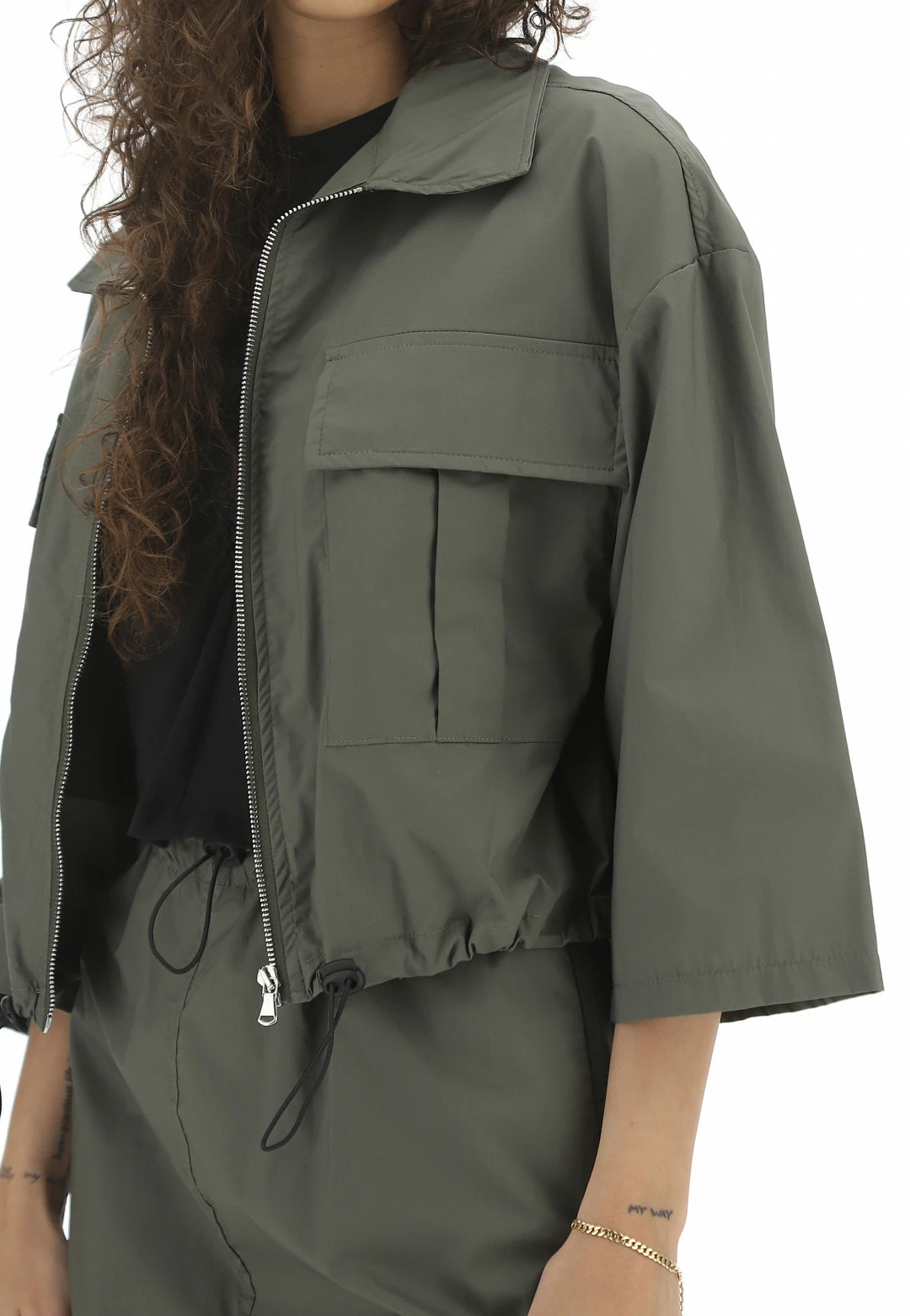 Giacchino Maniche A 3/4 Crop Susy Mix 81386 Con Zip E Tasconi Frontali