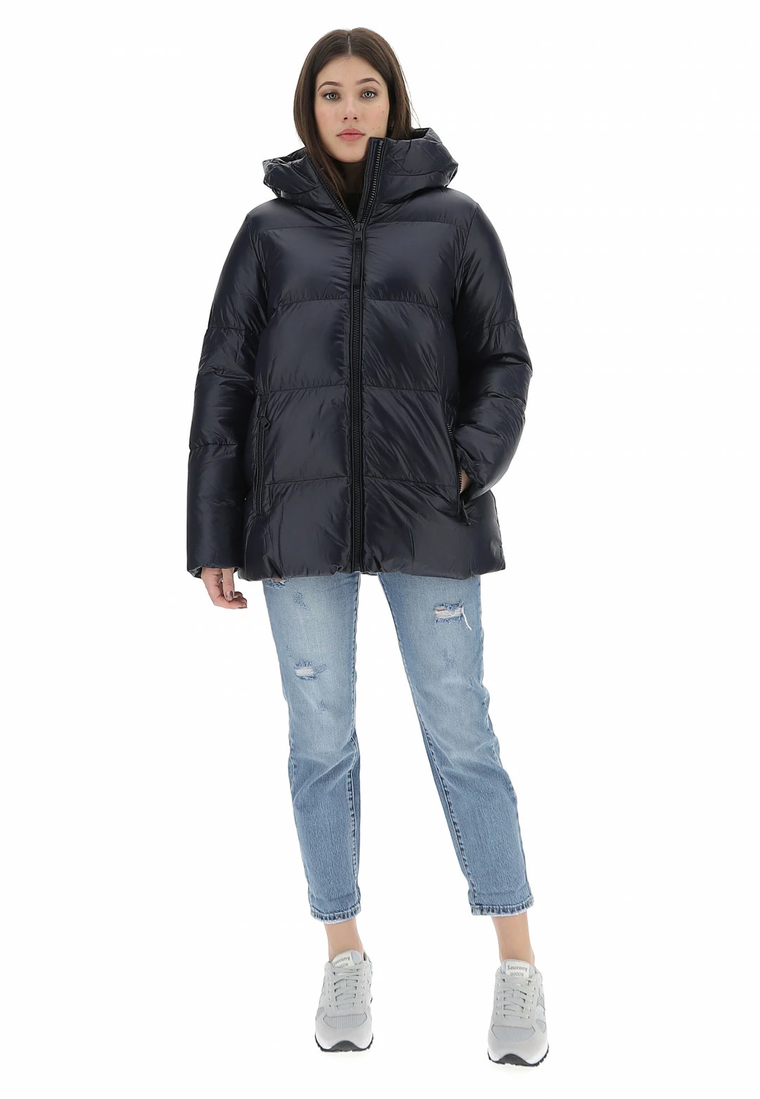 - Altre caratteristiche: tessuto idrorepellente, cappuccio fisso con logo ricamato, tasche con zip
