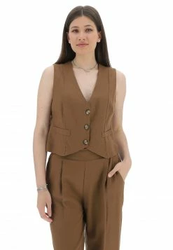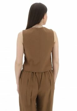 Gilet Crop Smanicato Susy Mix Donna In Misto Lino E Viscosa