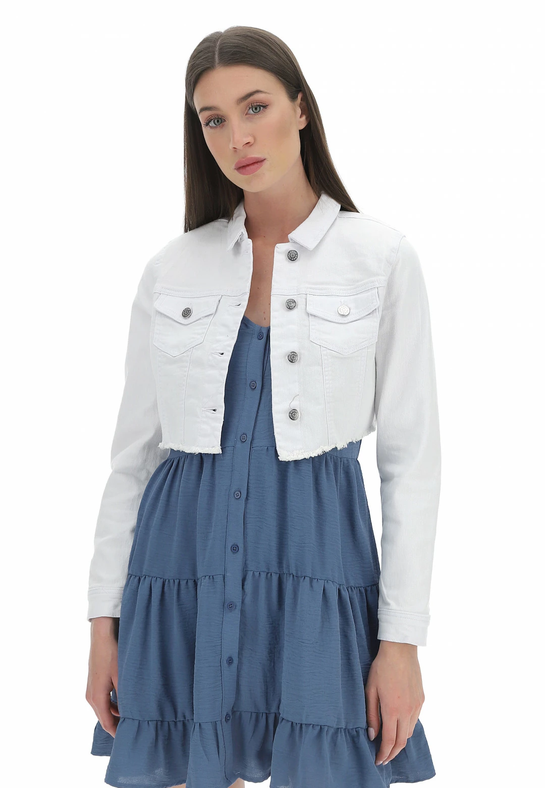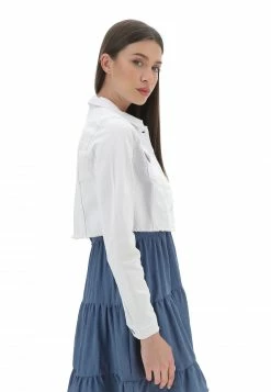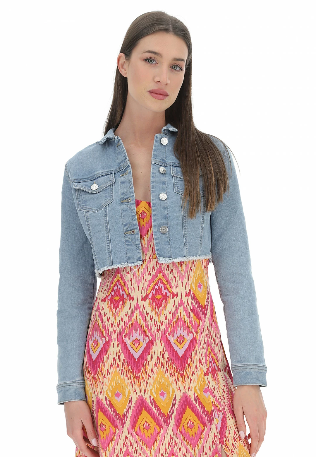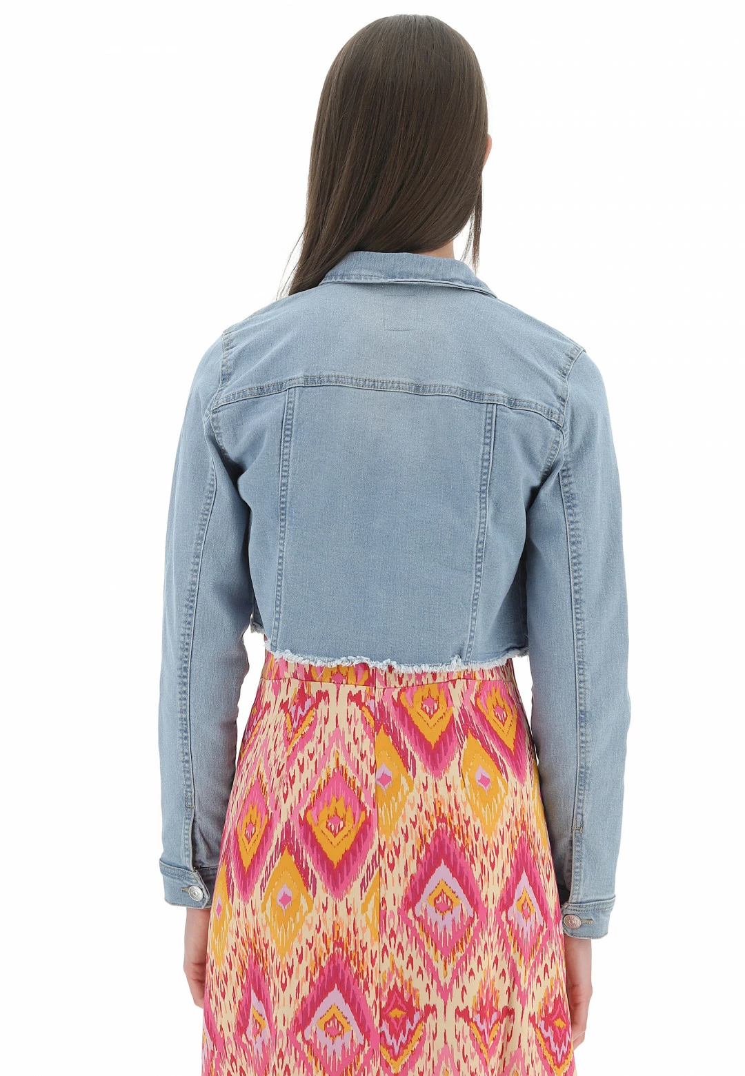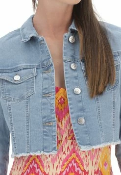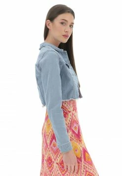 Giubbino Crop Only Donna In Denim Elasticizzato Con Fondo Sfrangiato