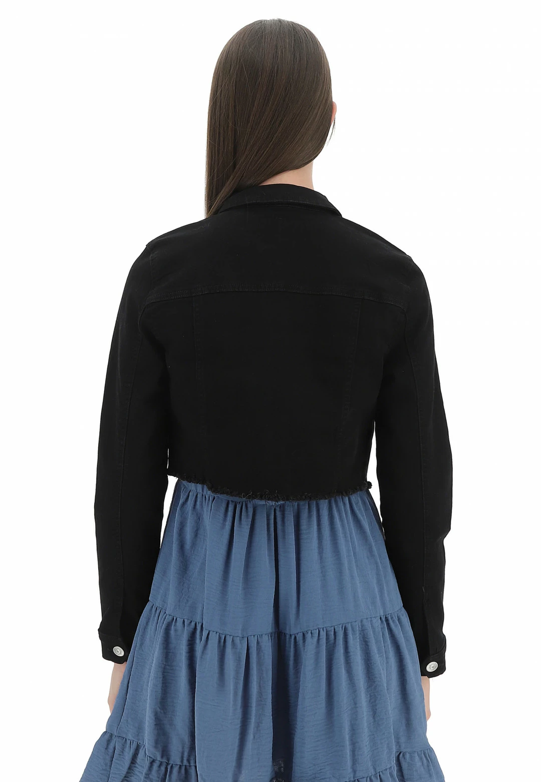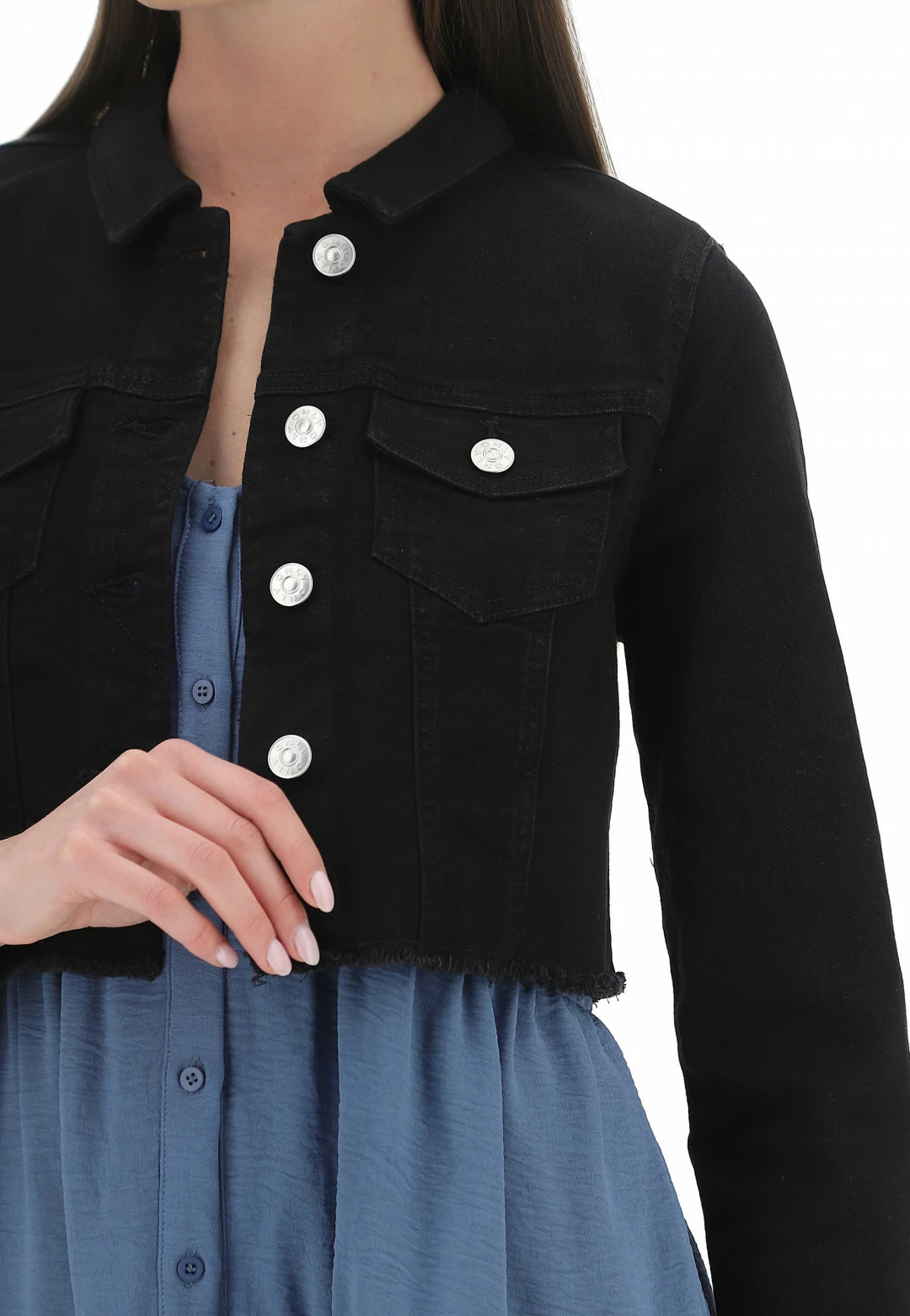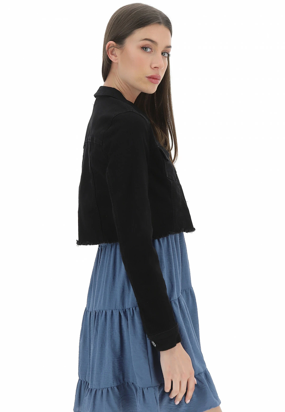 Giubbino Crop Only Donna In Denim Elasticizzato Con Fondo Sfrangiato