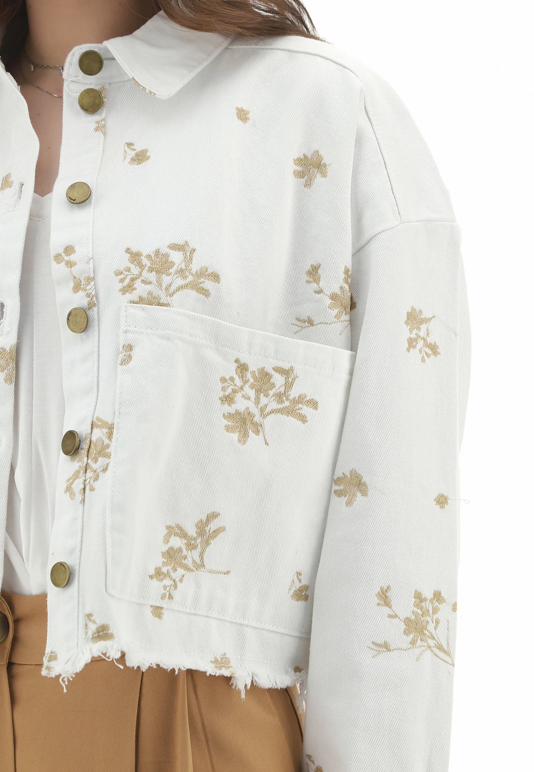 Giubbino Denim Ricamato Fondo Sfrangiato Place Du Jour