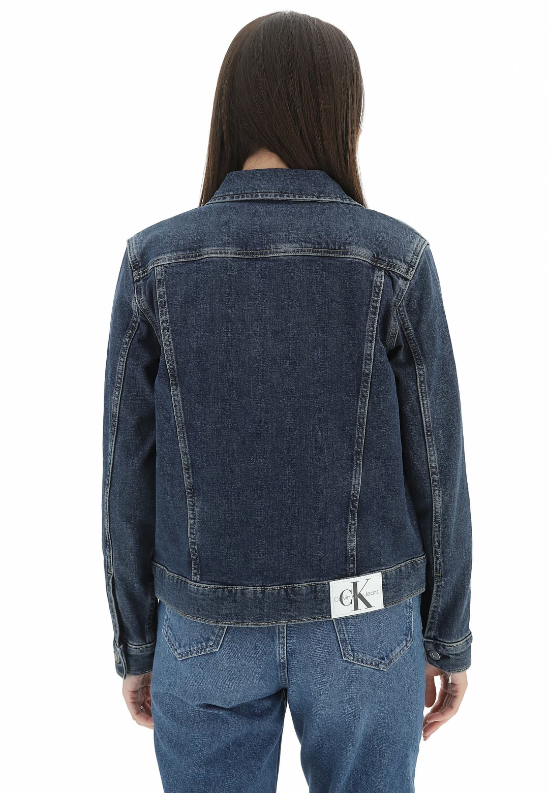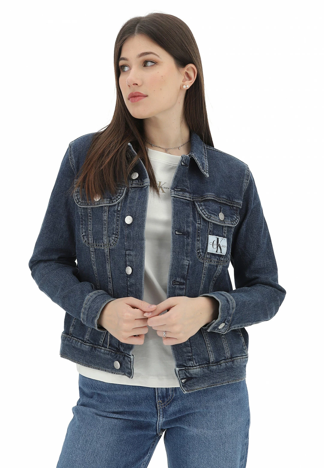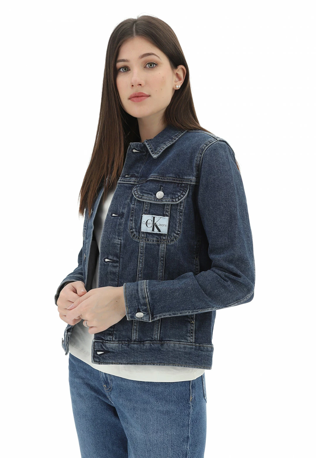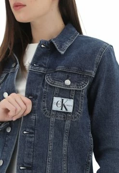 Giubbino In Denim Calvin Klein Jeans Donna Con Patch Logo Sul Petto Slim Fit Elasticizzato