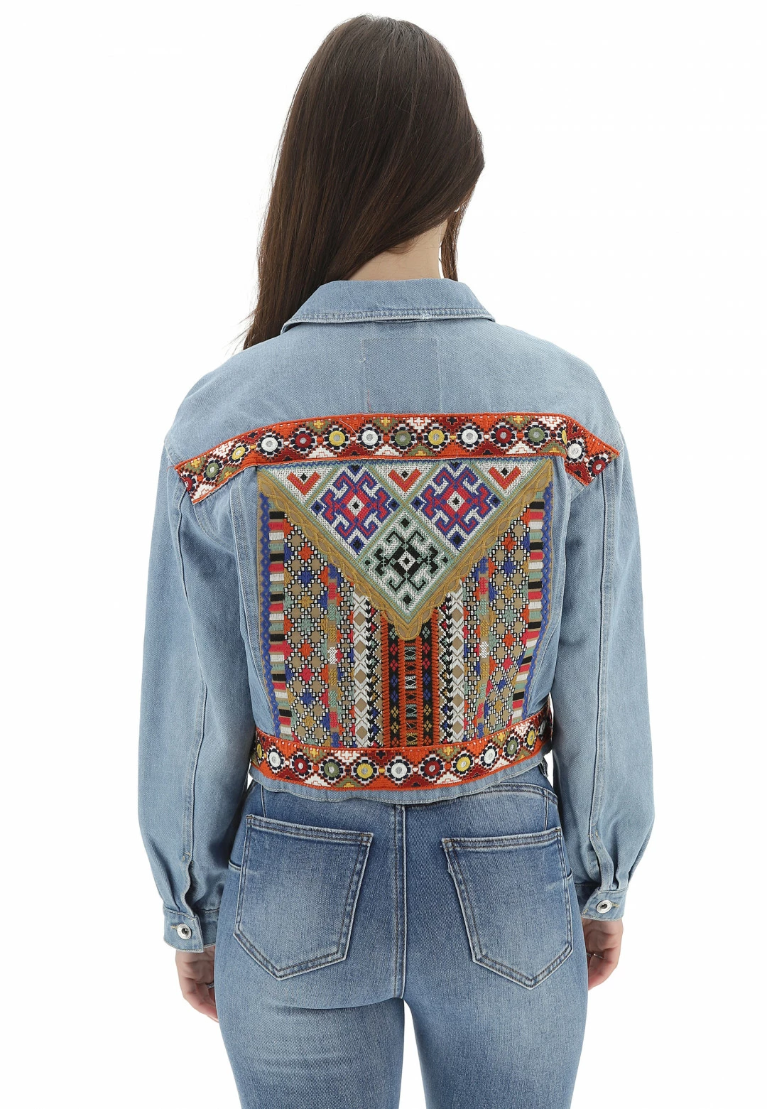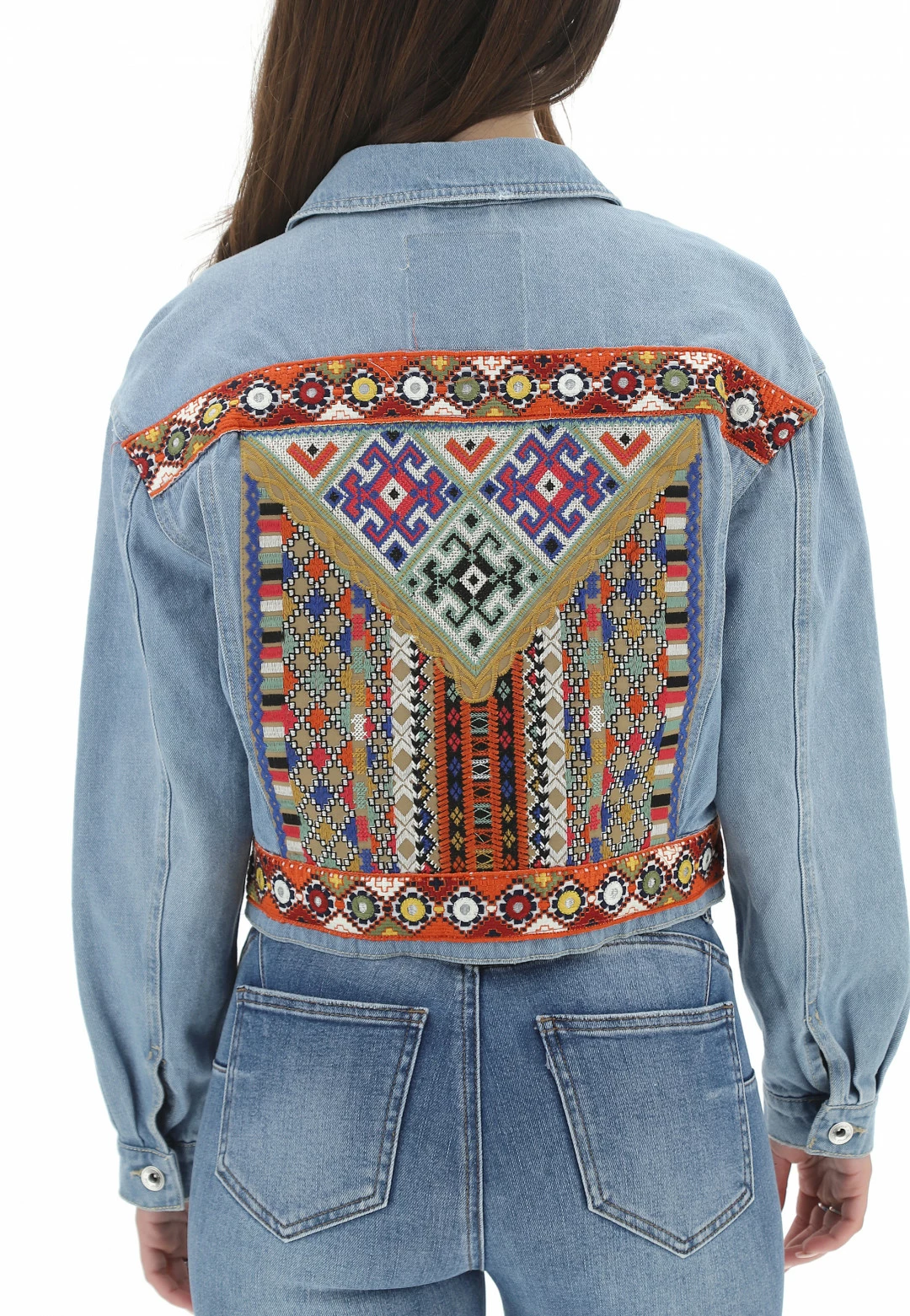 Giubbino In Jeans Only Donna Con Ricamo Etinico Sul Retro