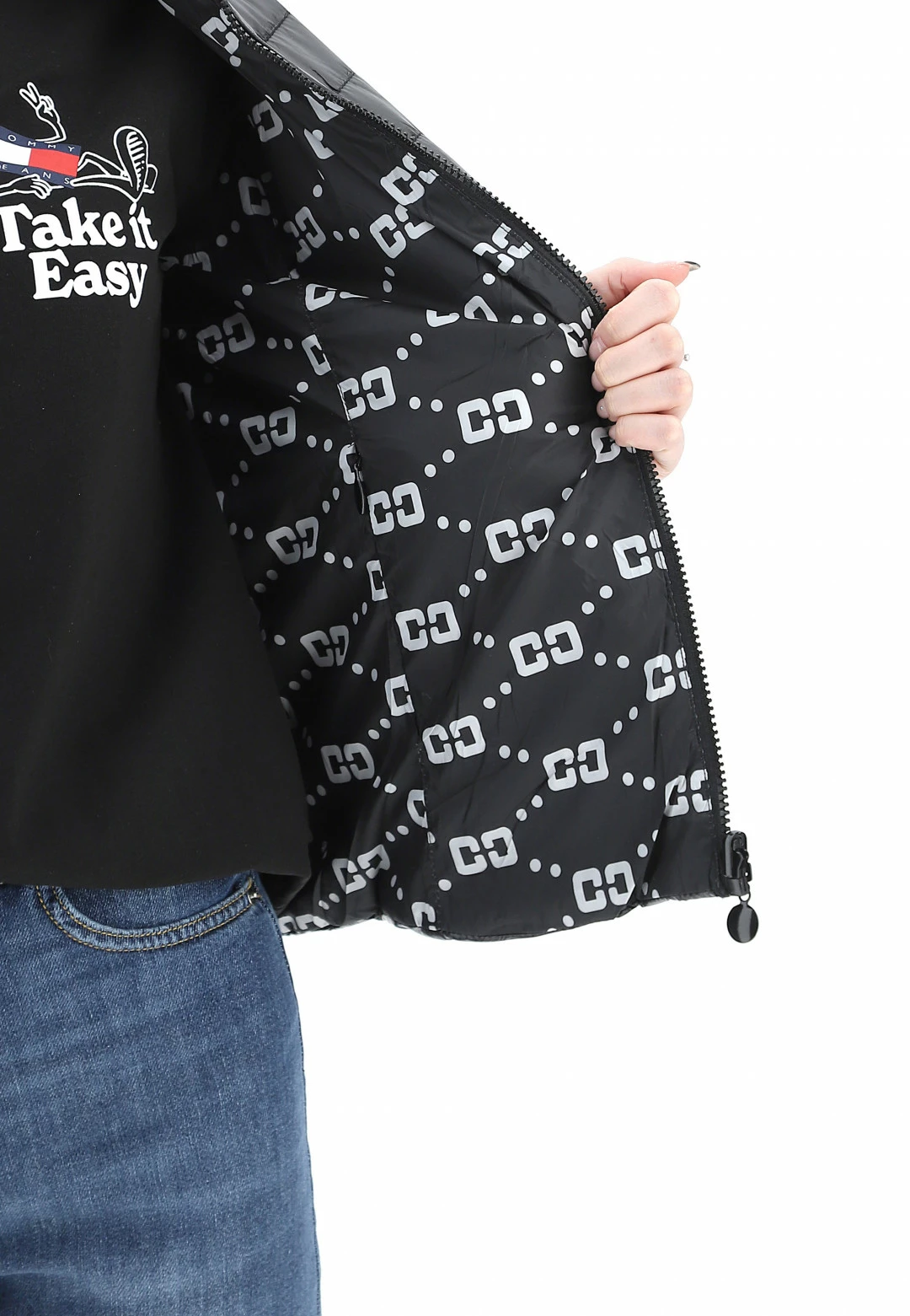 - Altre caratteristiche: tasche con chiusura zip, cappuccio con coulisse