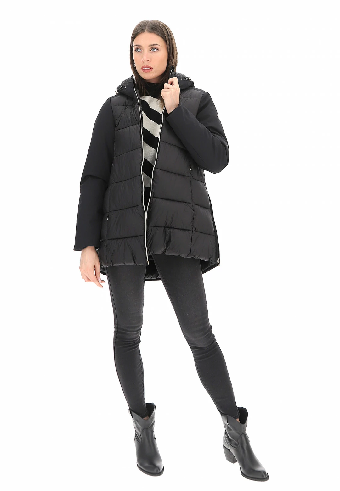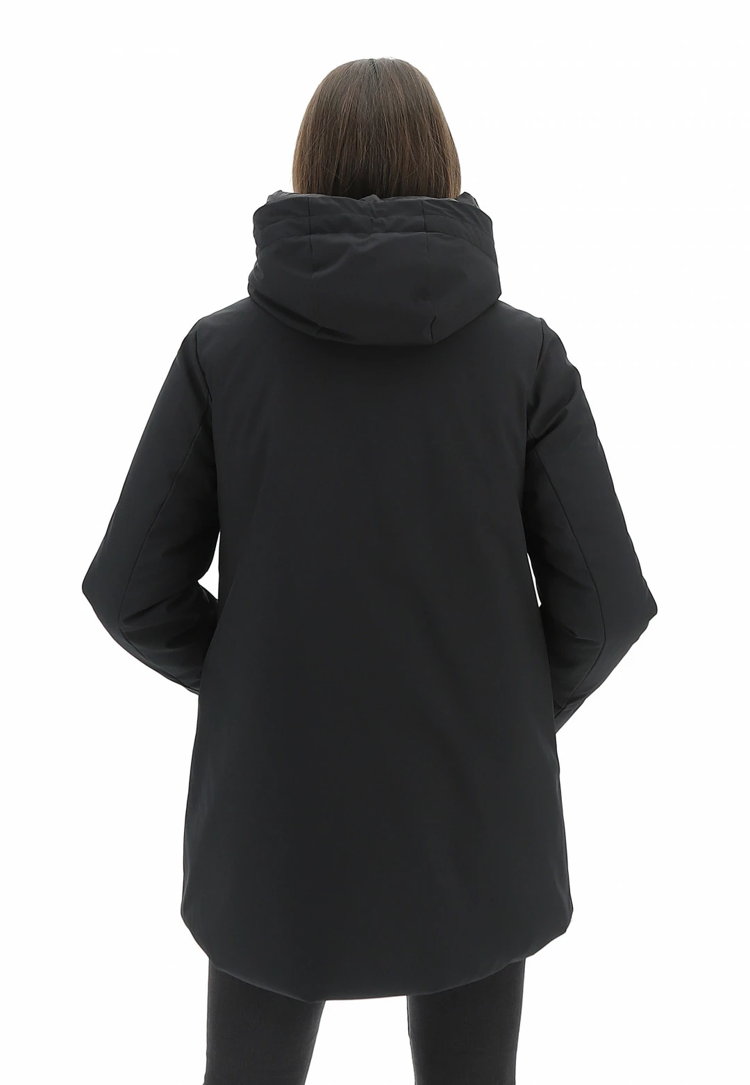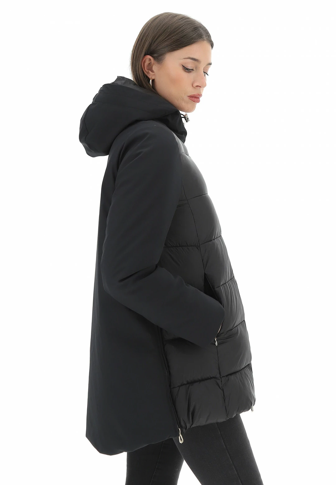 - Altre caratteristiche: cappuccio fisso con coulisse elastica, tasche a filo con zip