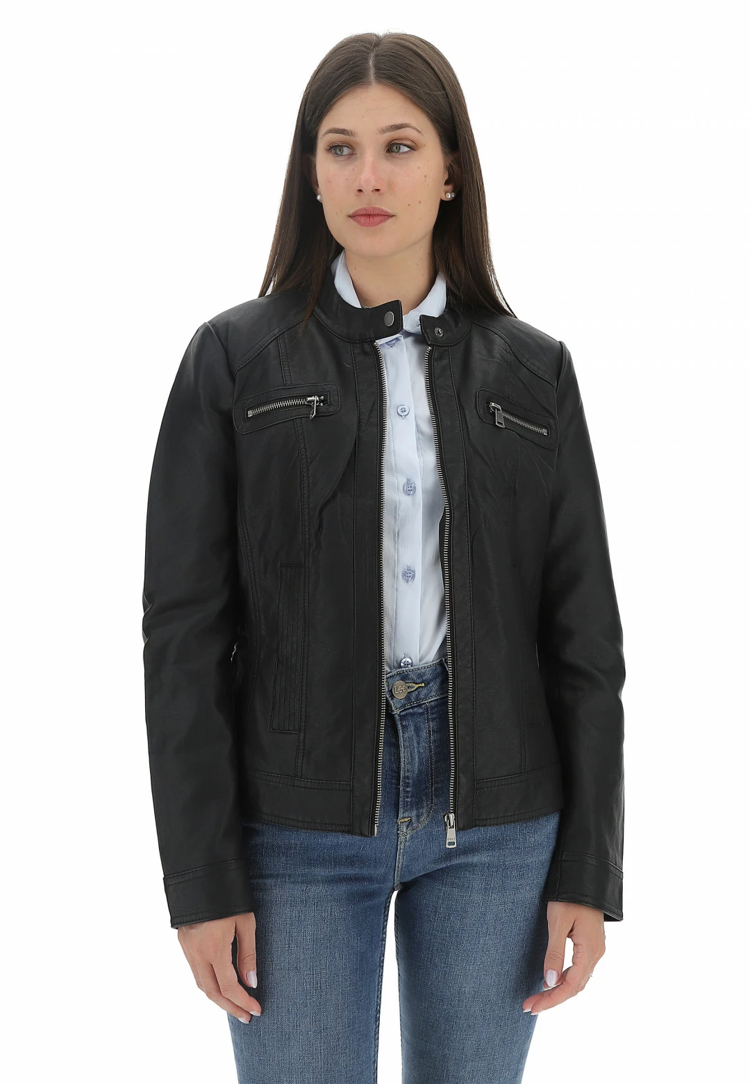Giubbino Similpelle Only Donna Con Zip E Collo A Fascetta