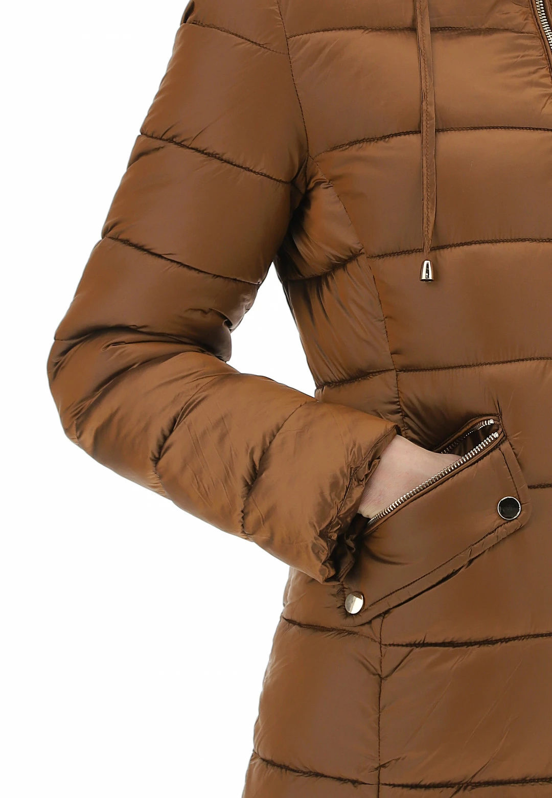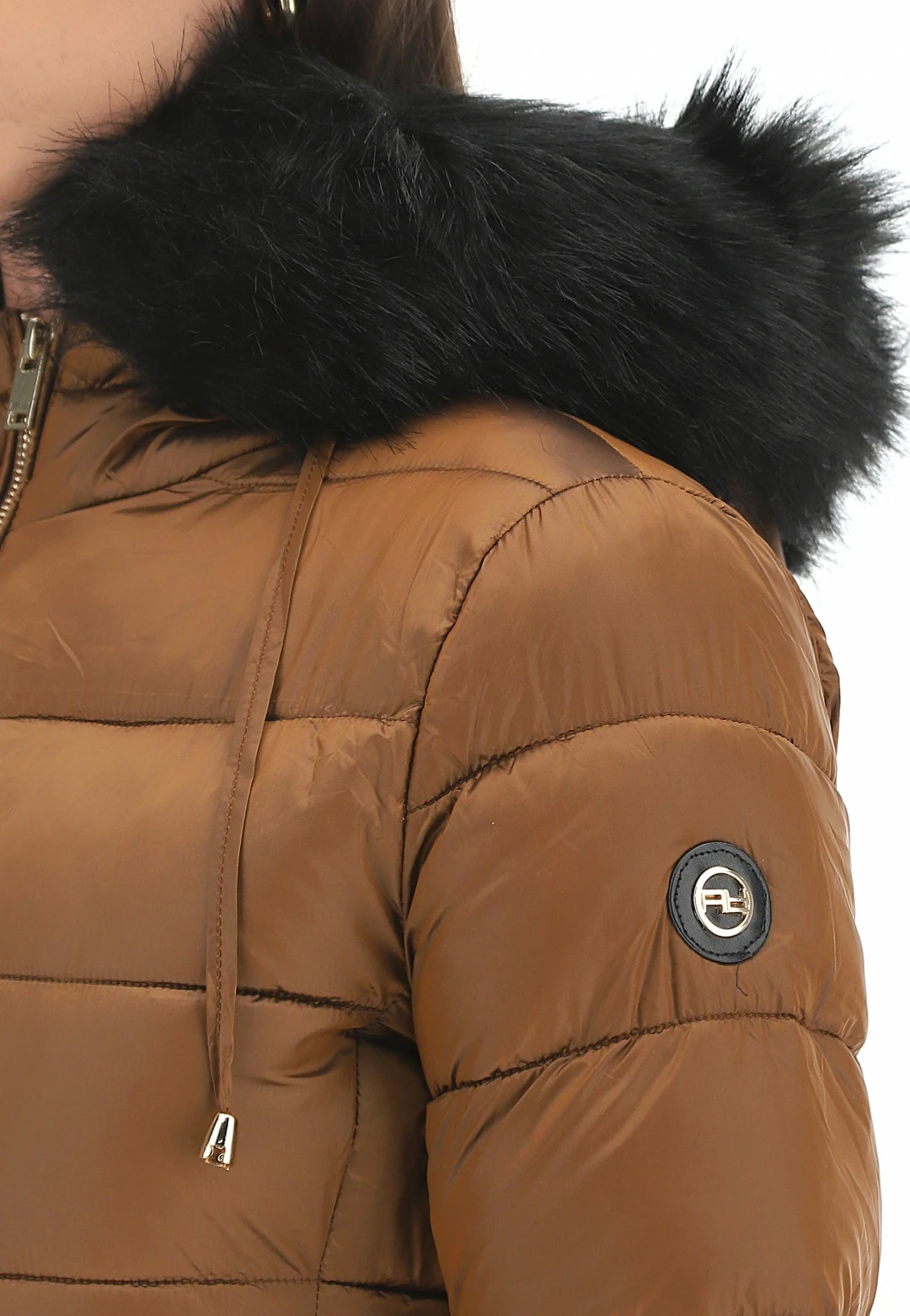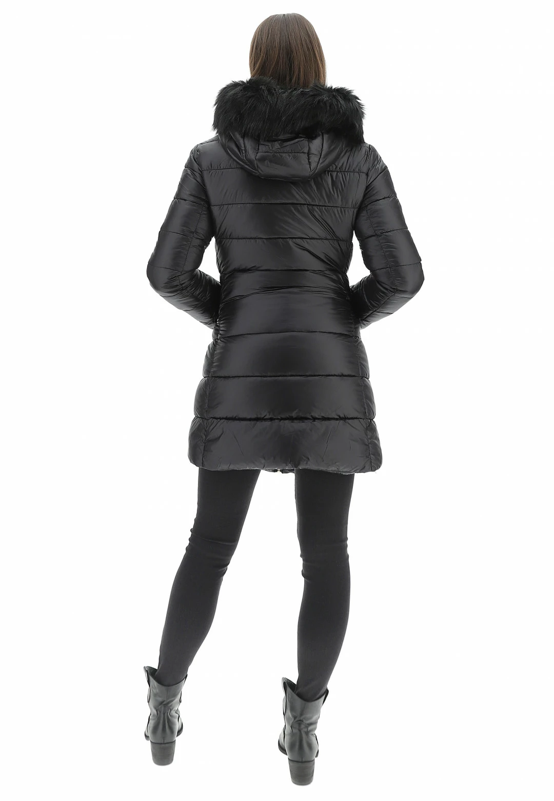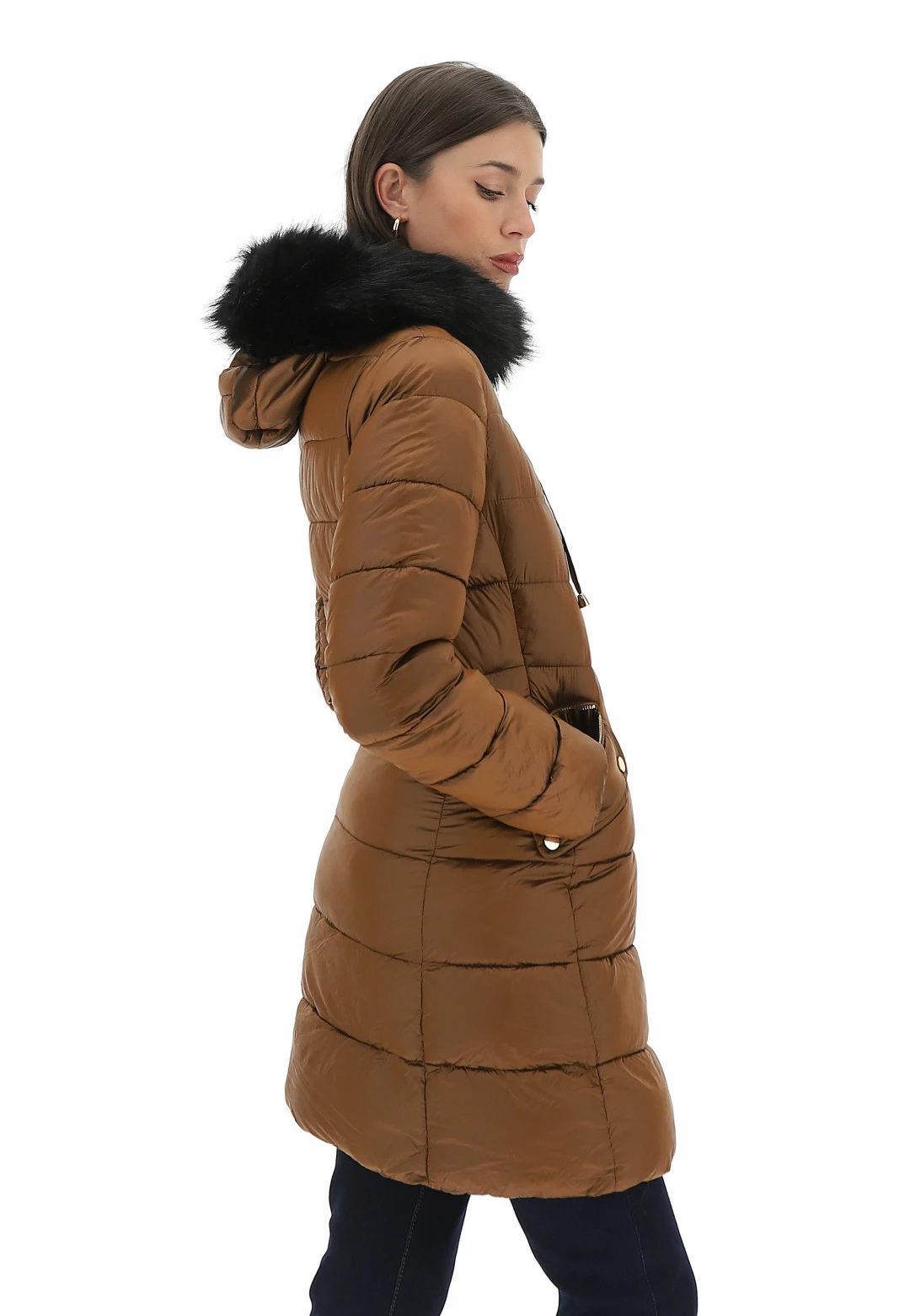 Giubbotto Lungo Artigli Ag35220 Con Cappuccio E Similpelliccia Remmovibile Con Dettagli A Contrasto