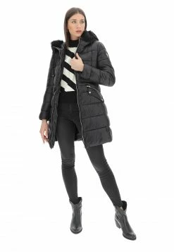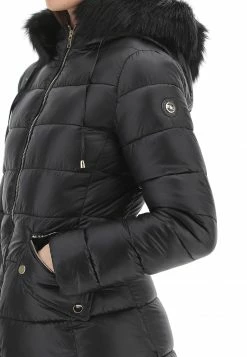 - Altre caratteristiche: Giubbotto trapuntato con cappuccio e semilpelliccia removibile, full zip e doppia tasca con zip e bottoni a pressione. Piccola patch del logo dorata sulla spalla.