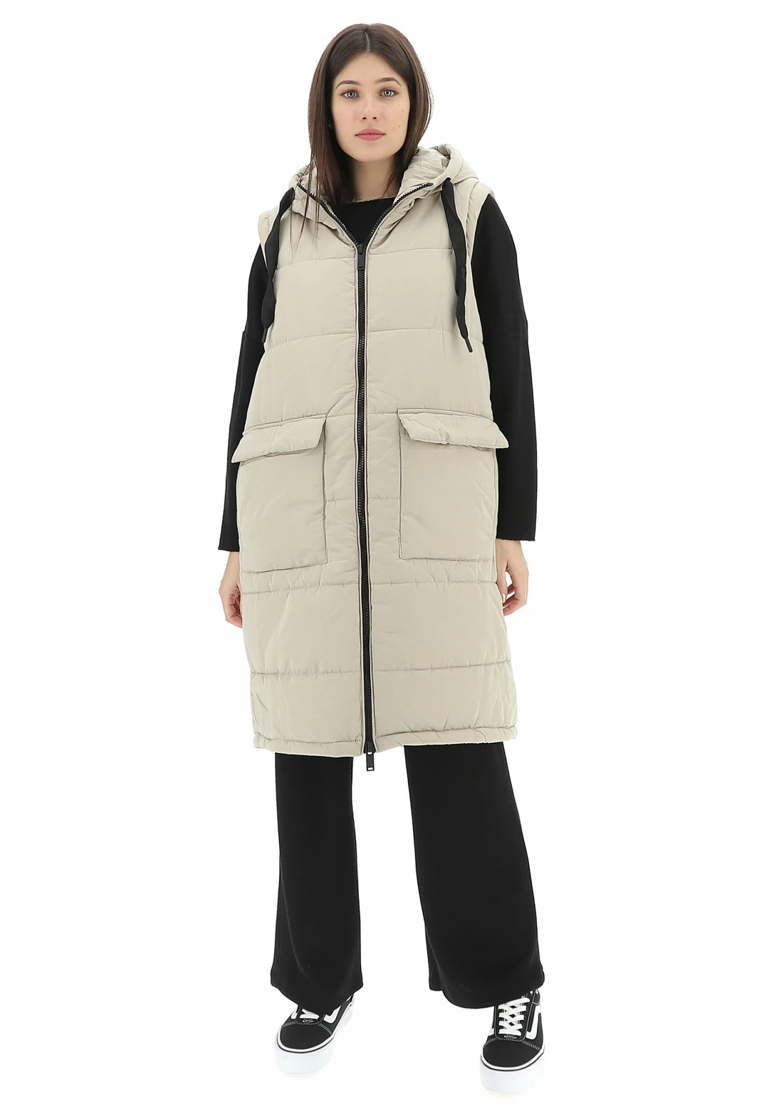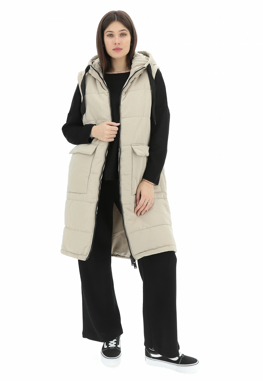 Maxi Gilet Tiffosi Con Cappuccio E Zip Donna Tinta Unita