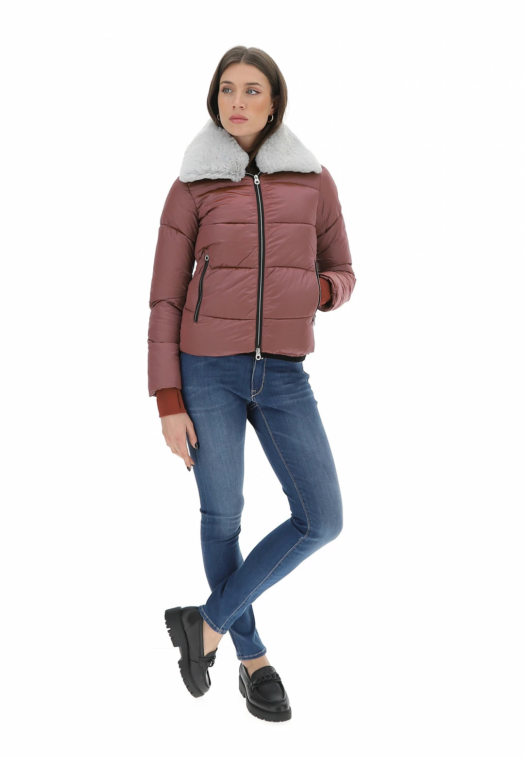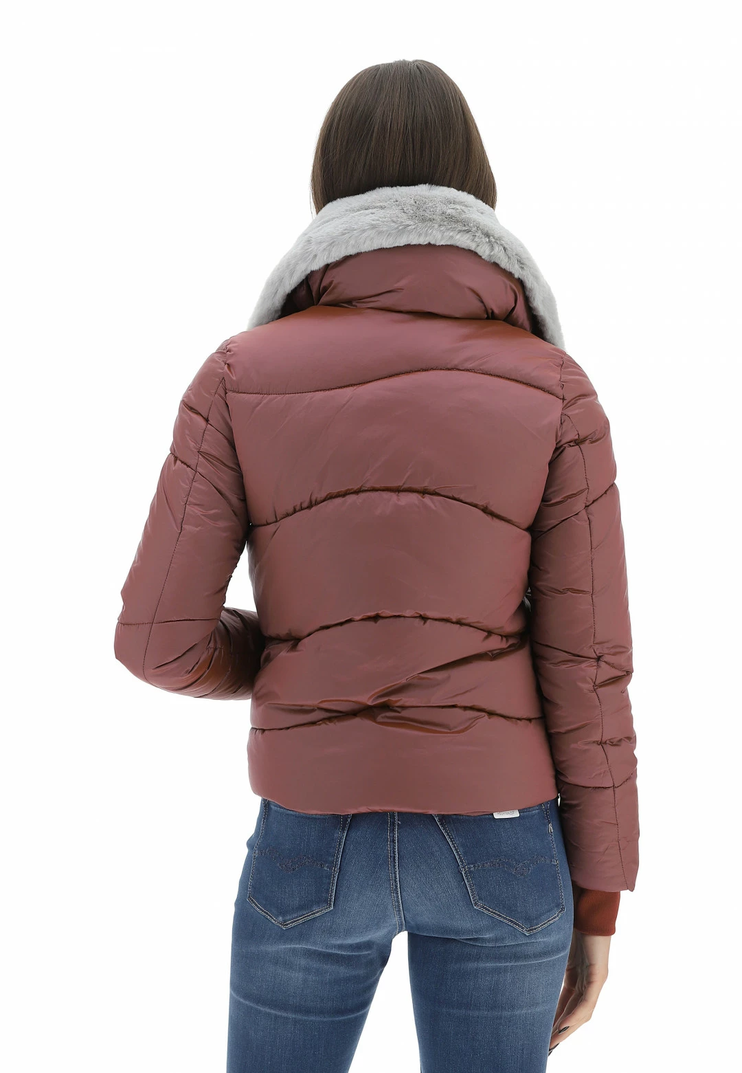 No Zone Giubotto Corto Nozone Con Collo Effetto Peliccia Rimovibile Donna