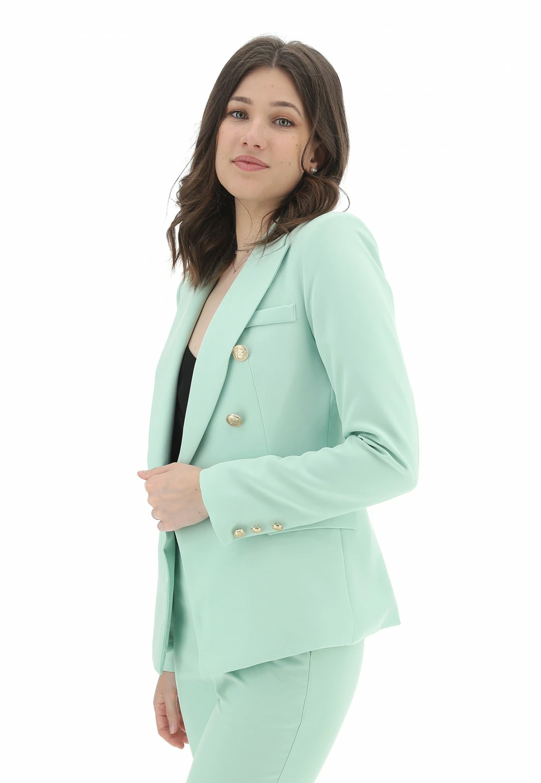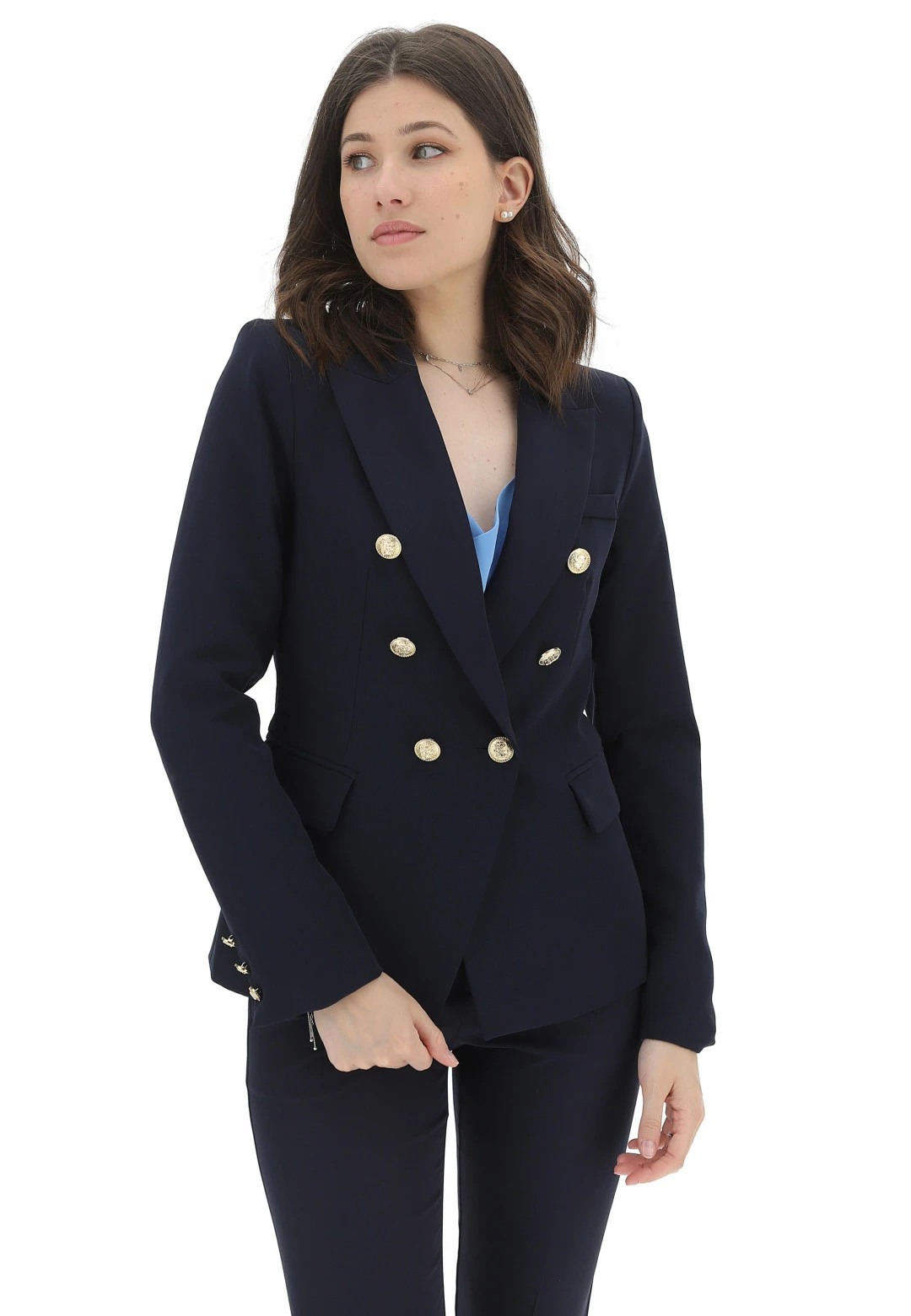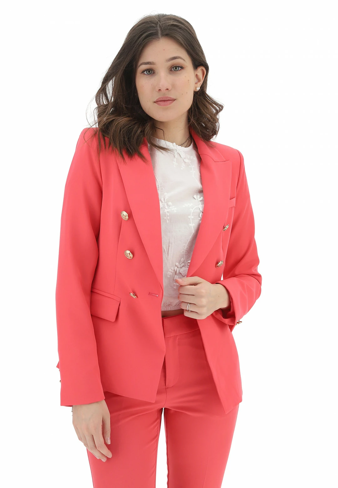 PINK PEPPER Giacca Attentif Donna Doppio Petto Tinta Unita Con Dettagli Dorati
