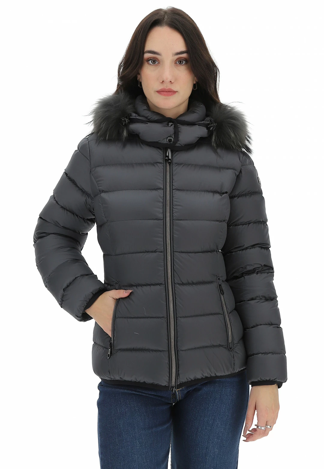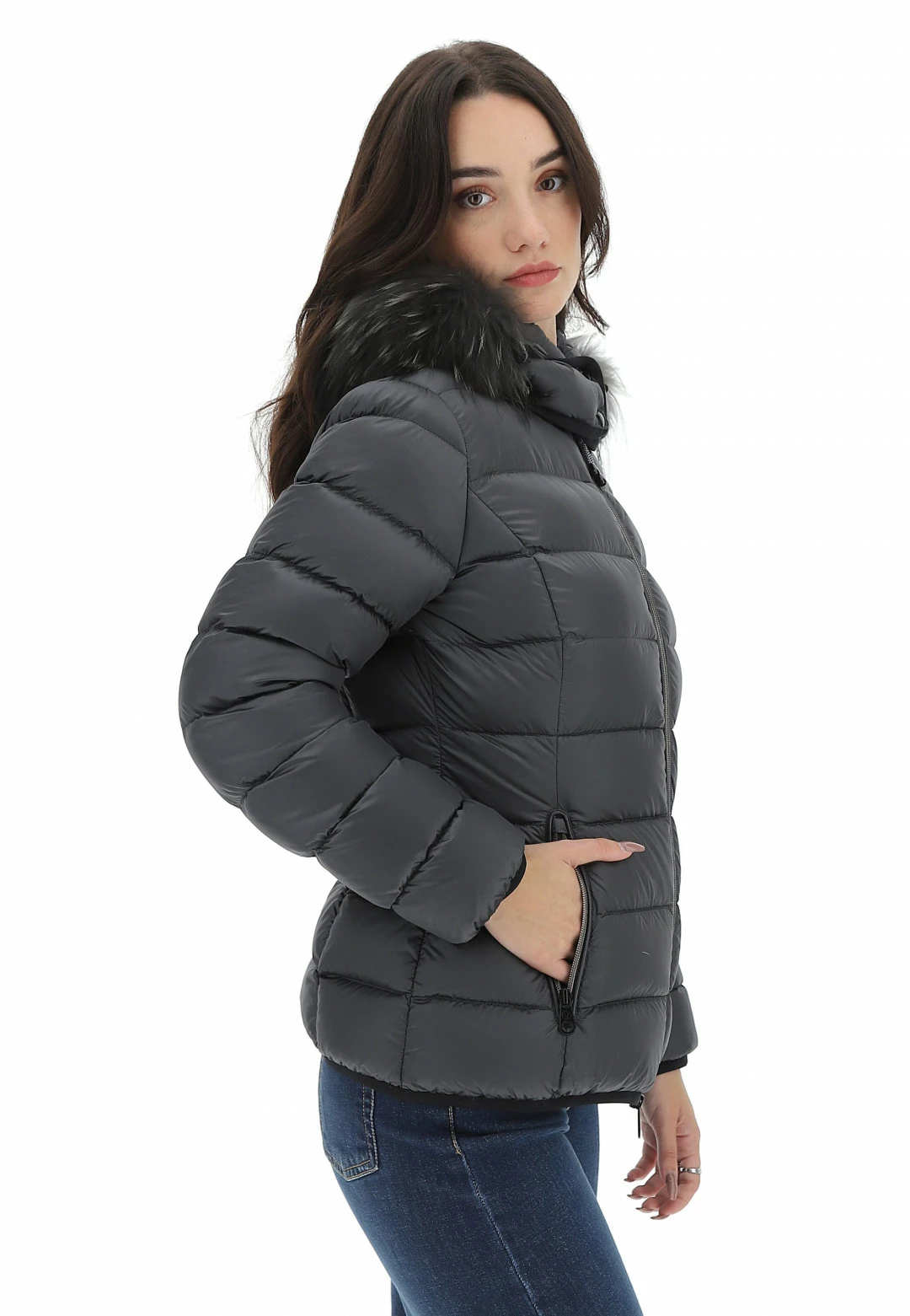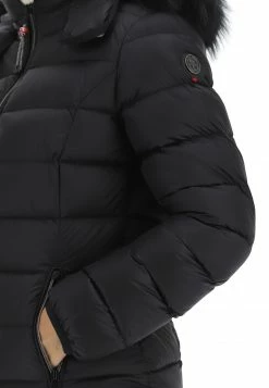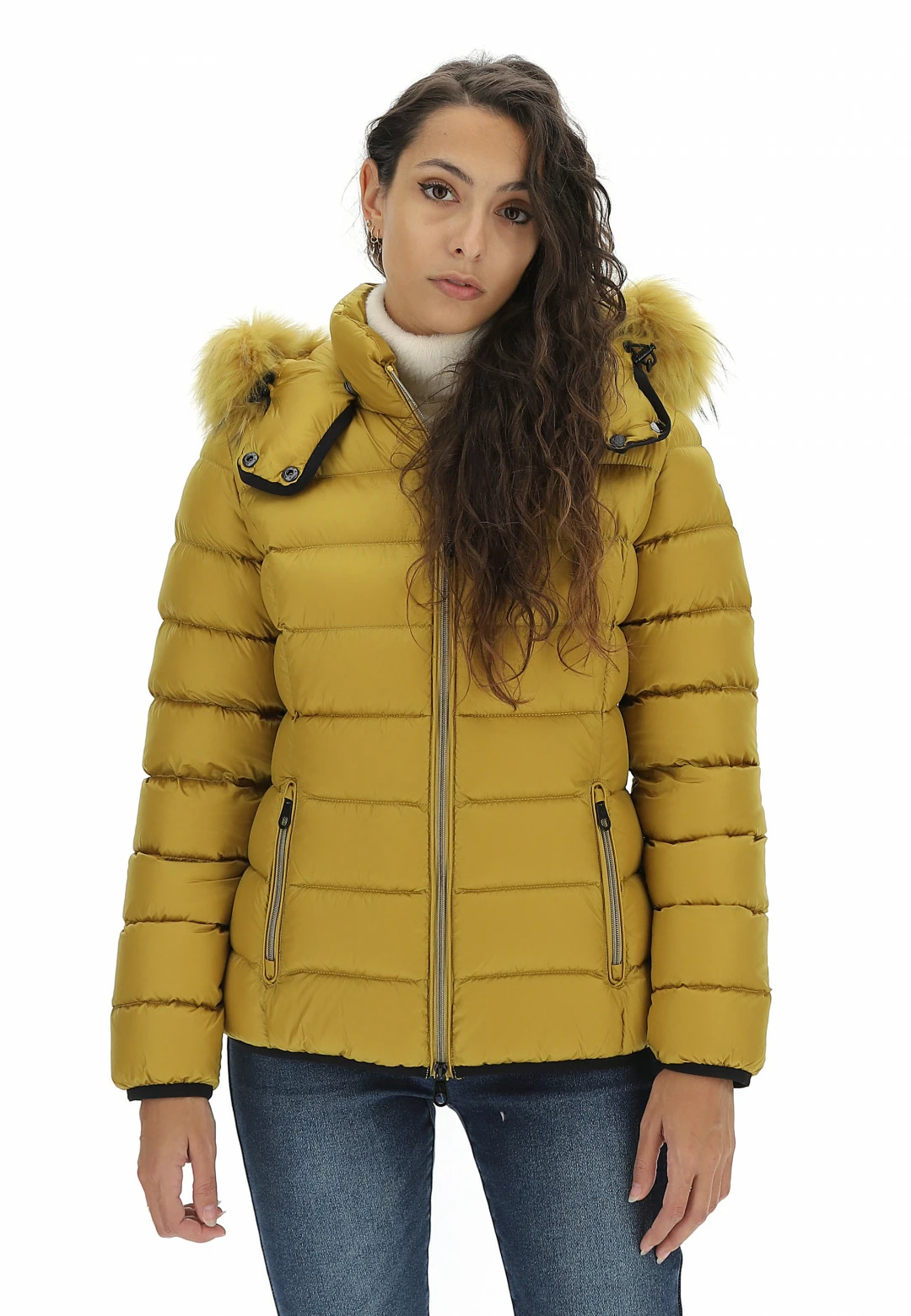 - Altre caratteristiche: Piumino da donna trapuntato, imbottito in piuma, leggero e confortevole, resistente al freddo fino a -10°. Cerniera a spirale con gioiello, cappuccio removibile regolabile con elastico e con pelliccia Murmasky staccabile.