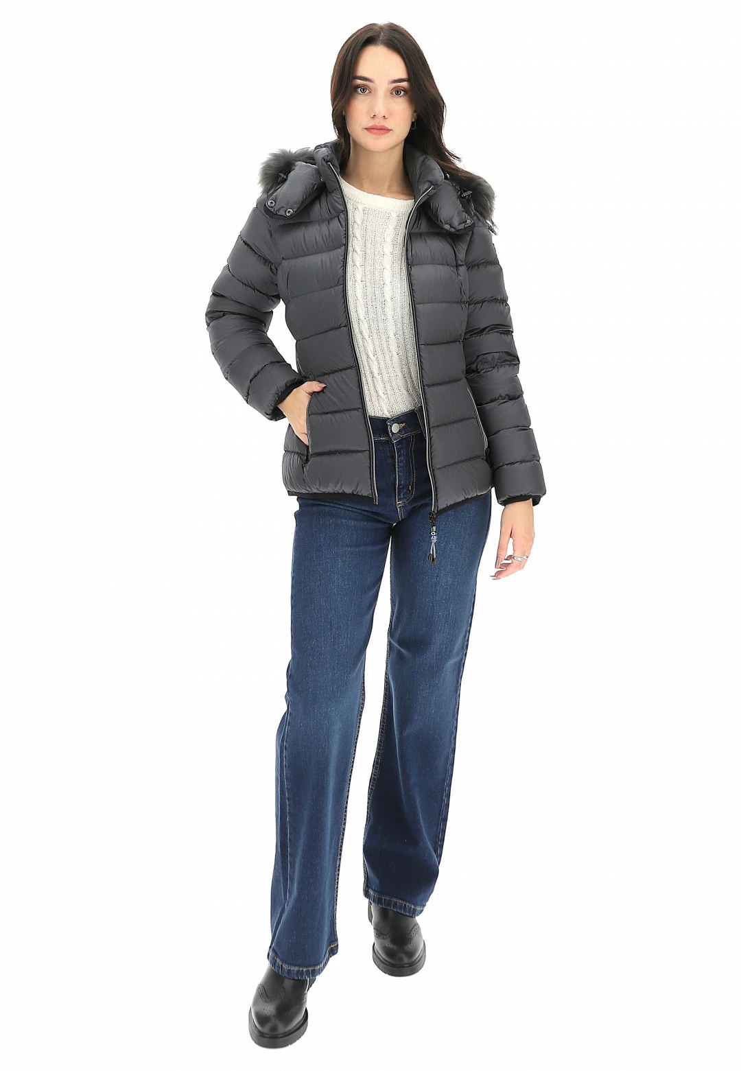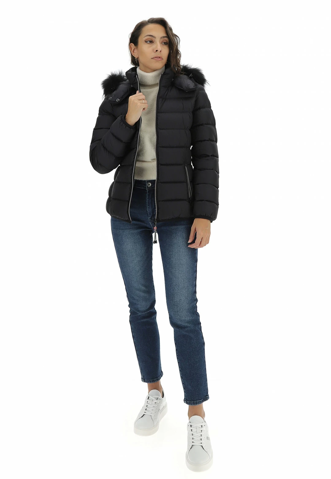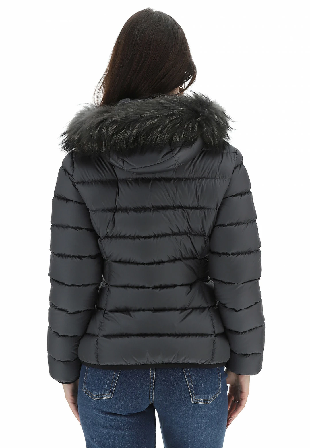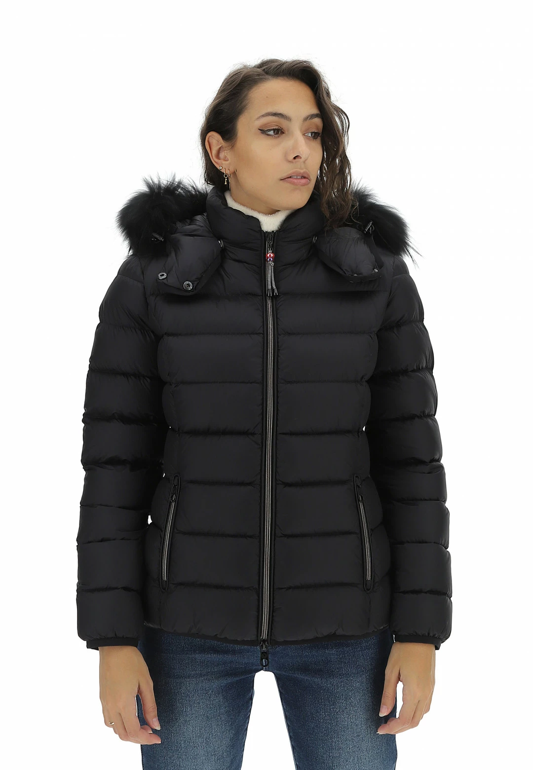 - Altre caratteristiche: Piumino da donna trapuntato, imbottito in piuma, leggero e confortevole, resistente al freddo fino a -10°. Cerniera a spirale con gioiello, cappuccio removibile regolabile con elastico e con pelliccia Murmasky staccabile.