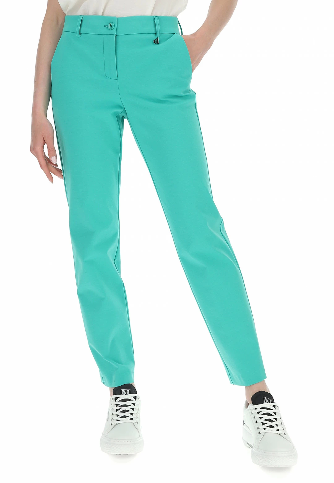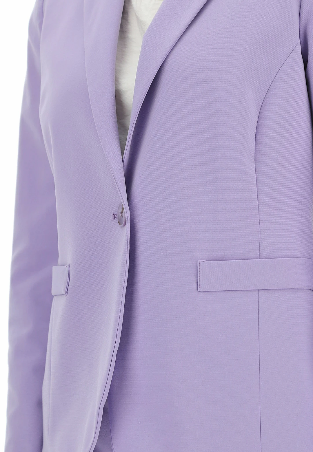 - Chiusura: giacca con bottone, pantalone con bottone e zip